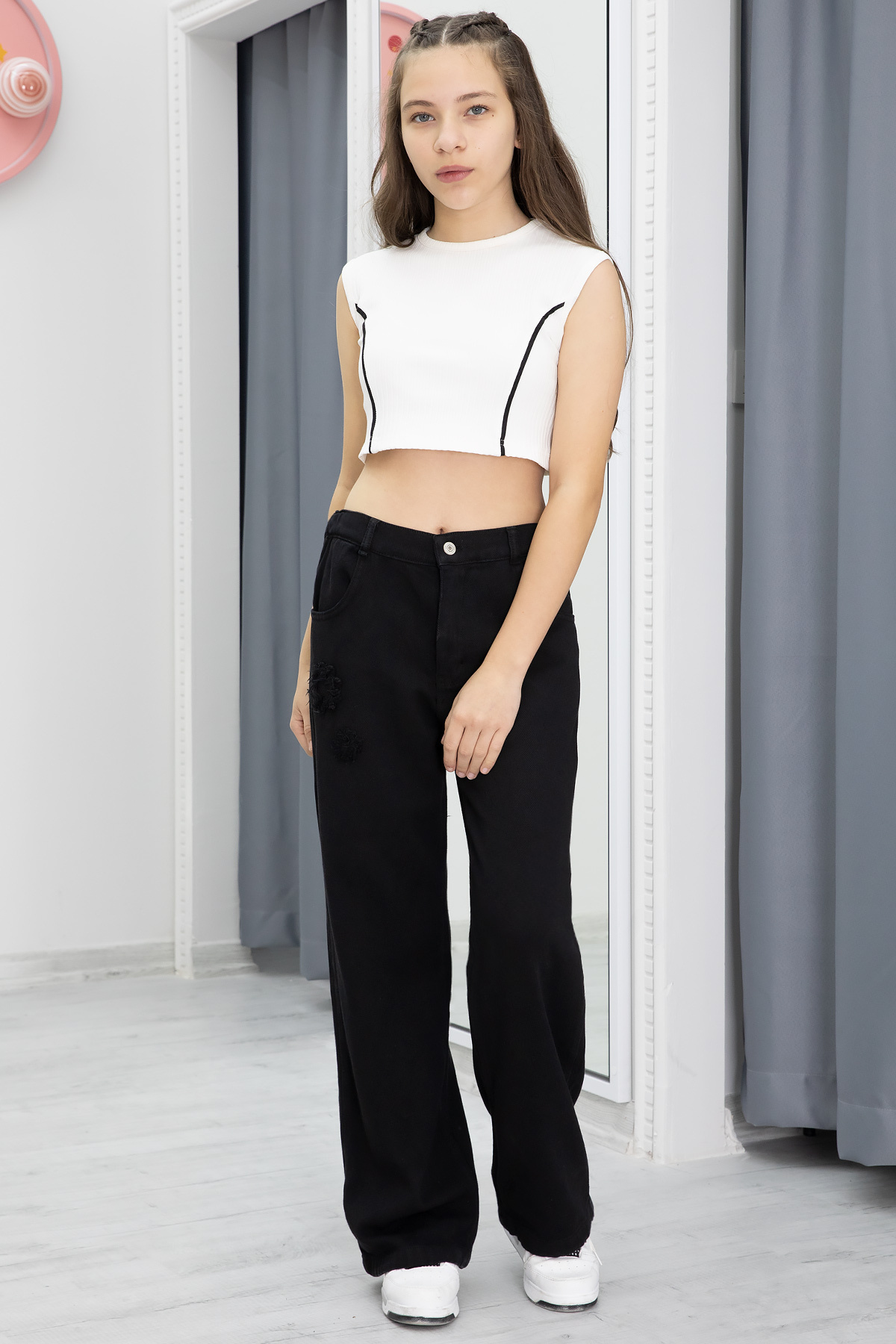 Siyah Nakış Detay Geniş Paça Kız Çocuk Jean Pantolon 20299 Siyah Nakış Detay Geniş Paça Kız Çocuk Jean Pantolon 20299 GRPCM00020298 16-17 Yaş