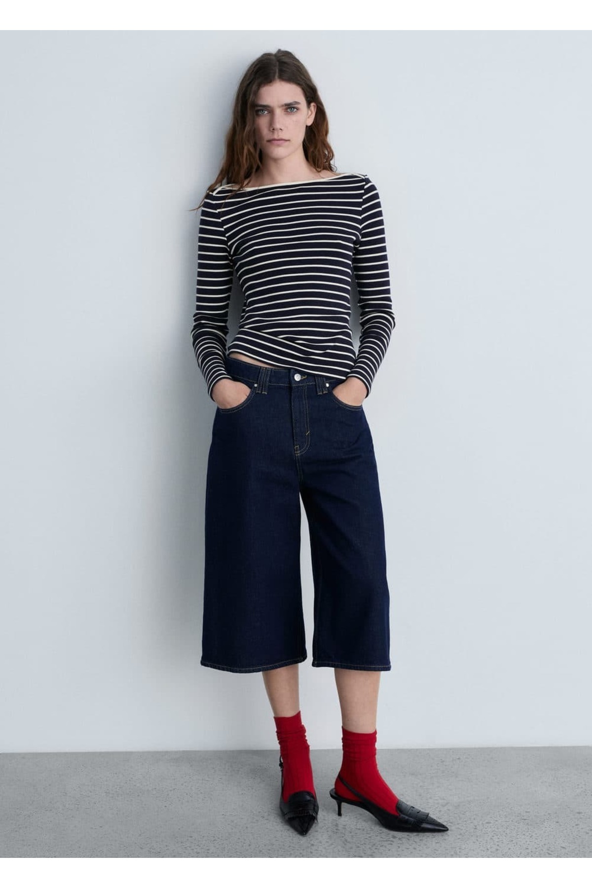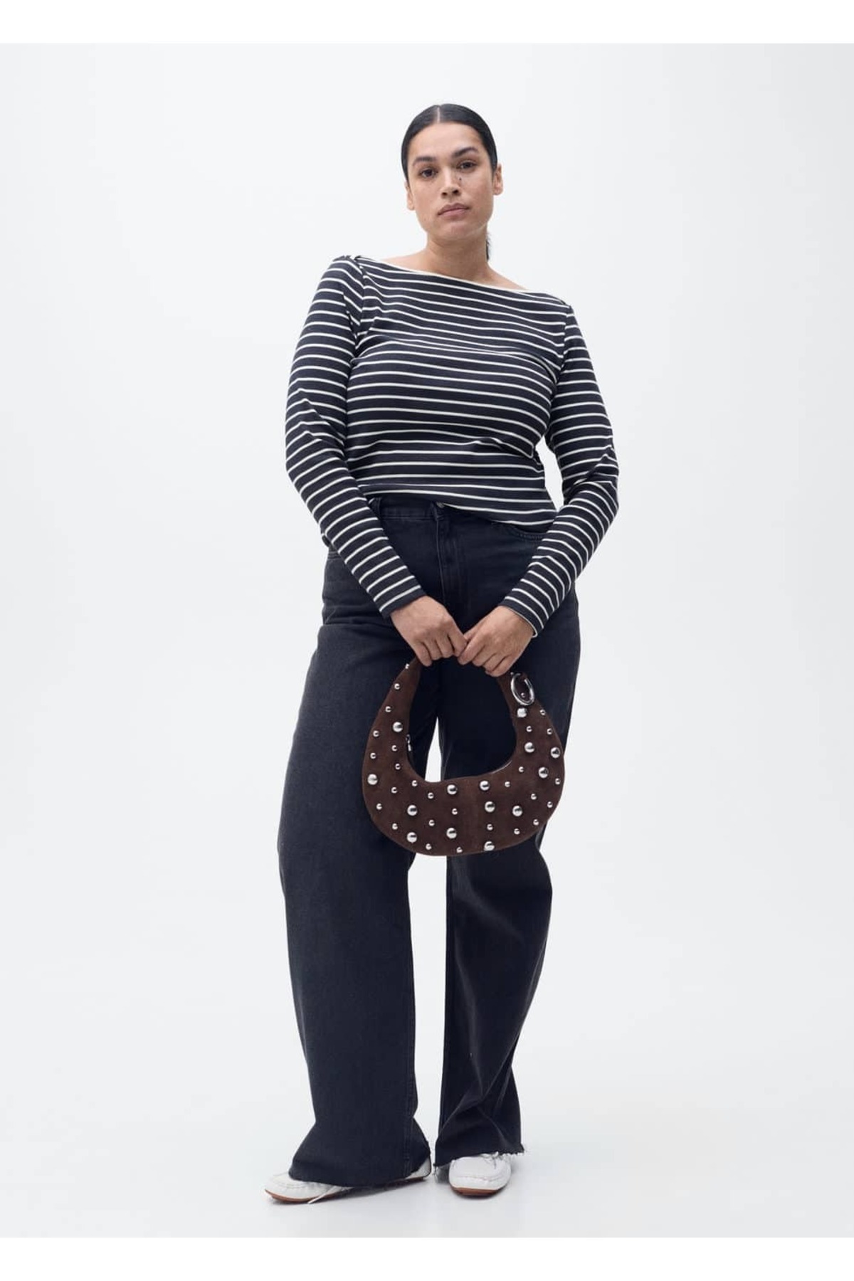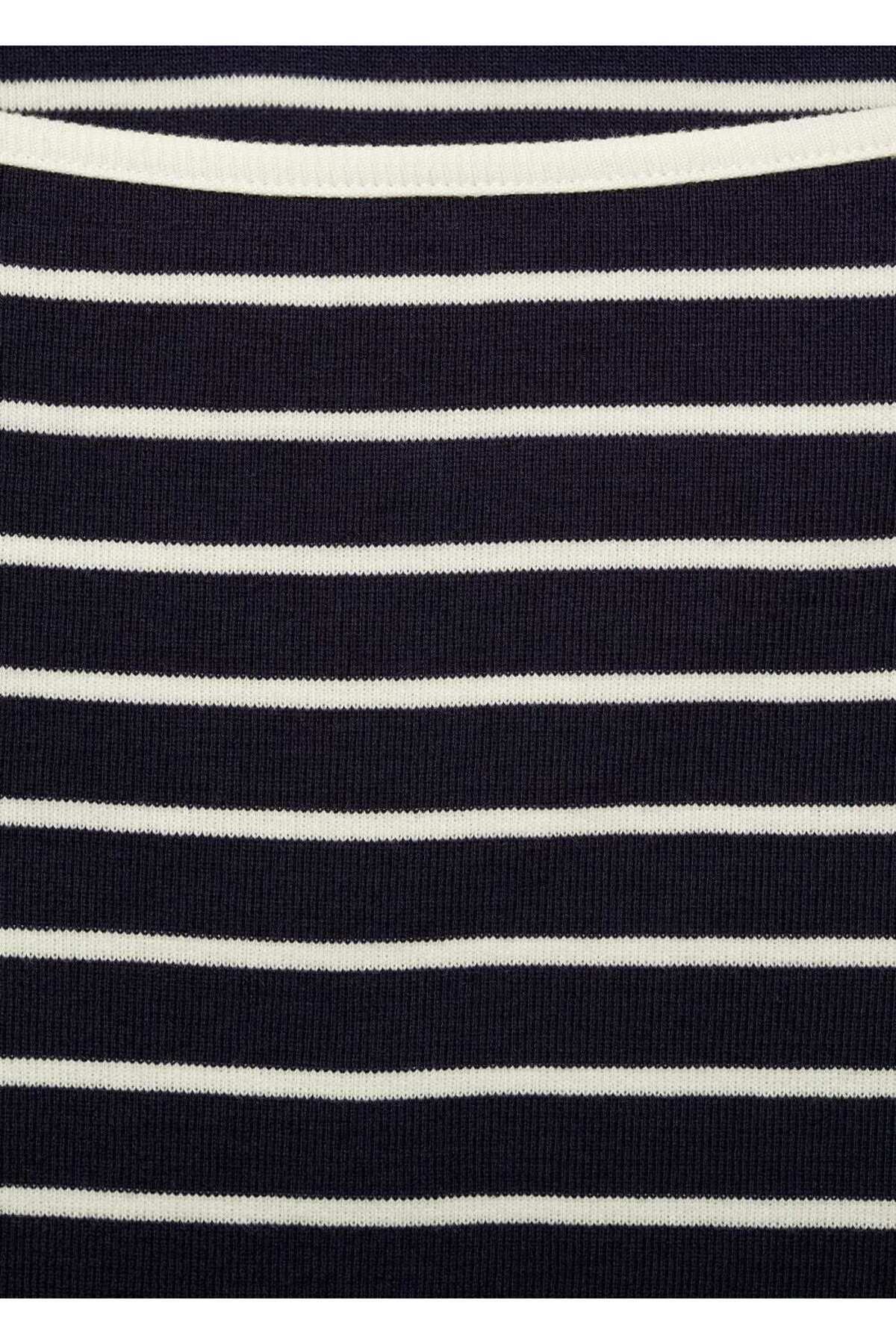 Çizgili kayık yaka tişört Çizgili kayık yaka tişört 87094416 52-54