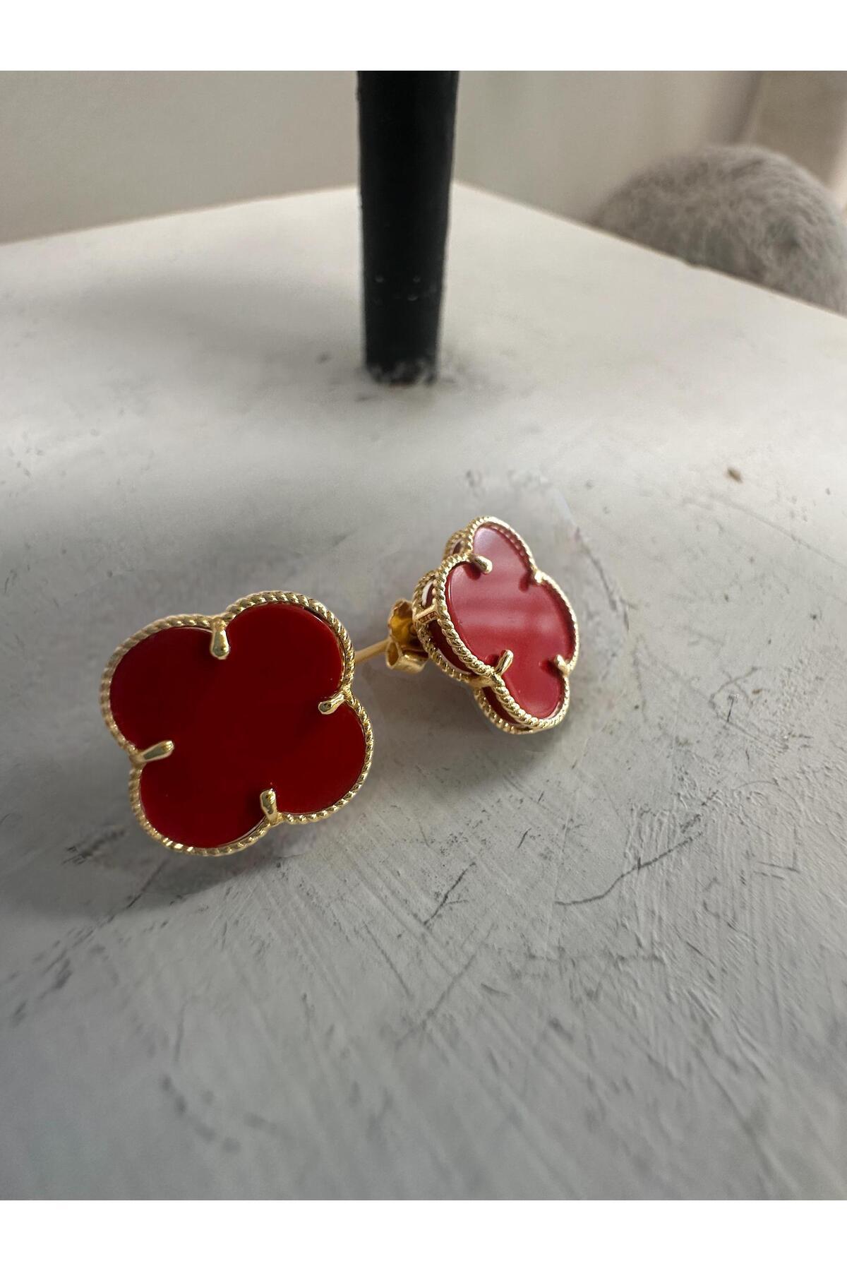 Altın Kaplama Bordo Taşlı Yonca Küpe 925 Ayar Gümüş Altın Kaplama Bordo Taşlı Yonca Küpe 925 Ayar Gümüş 27266262 0