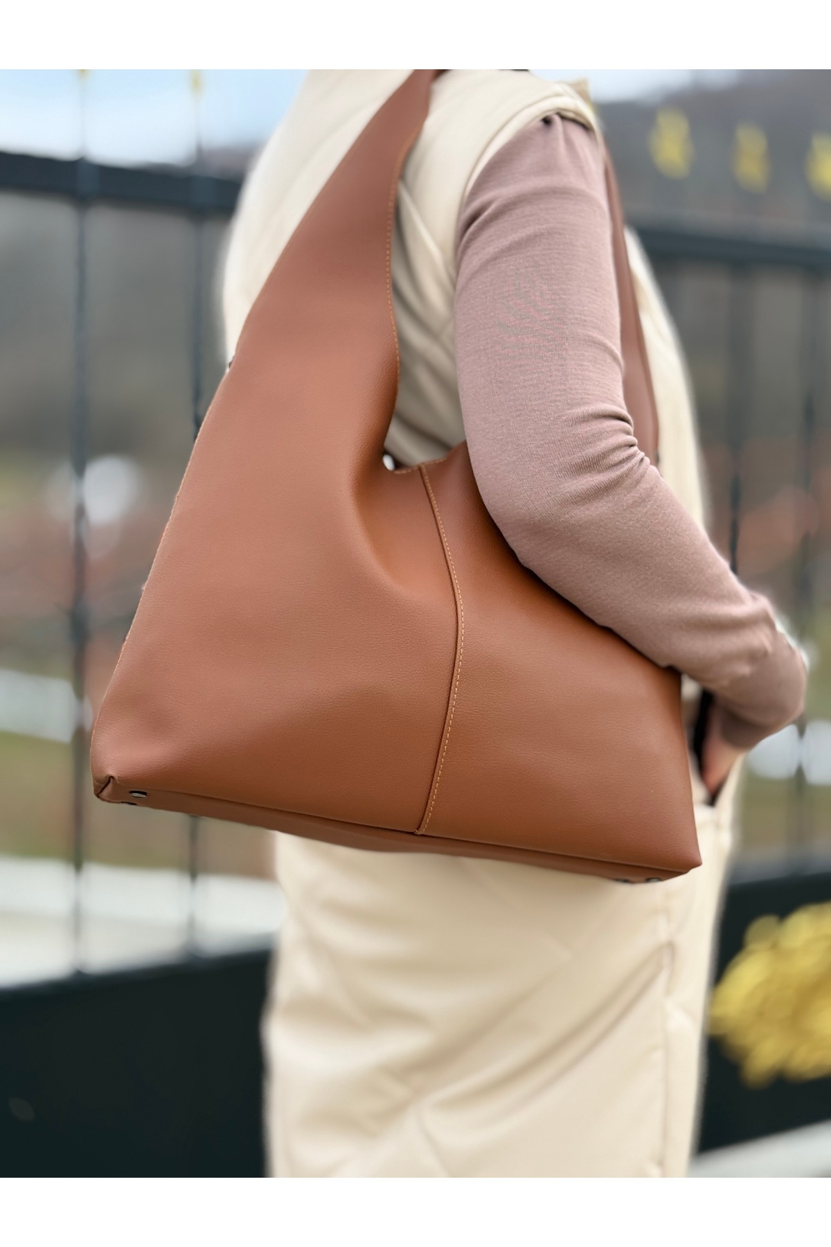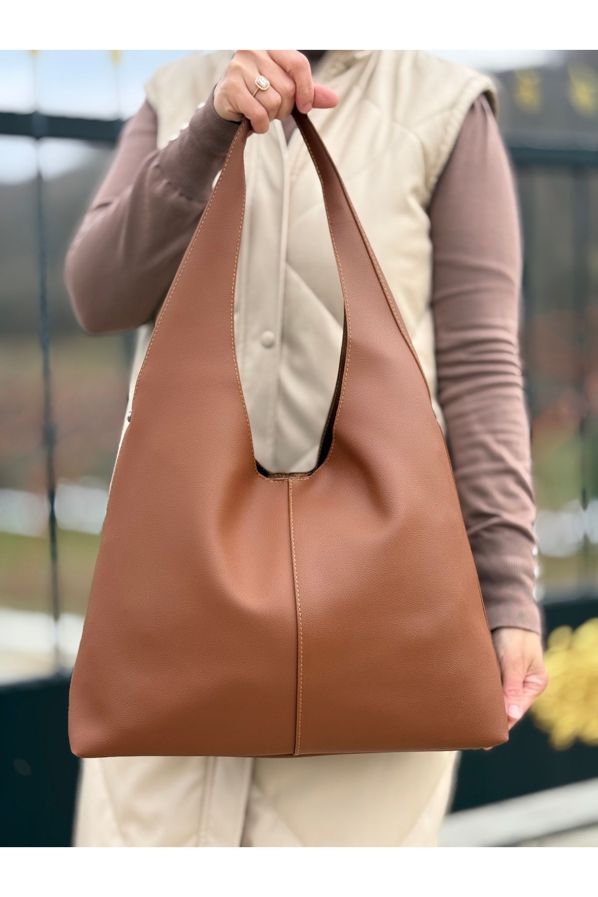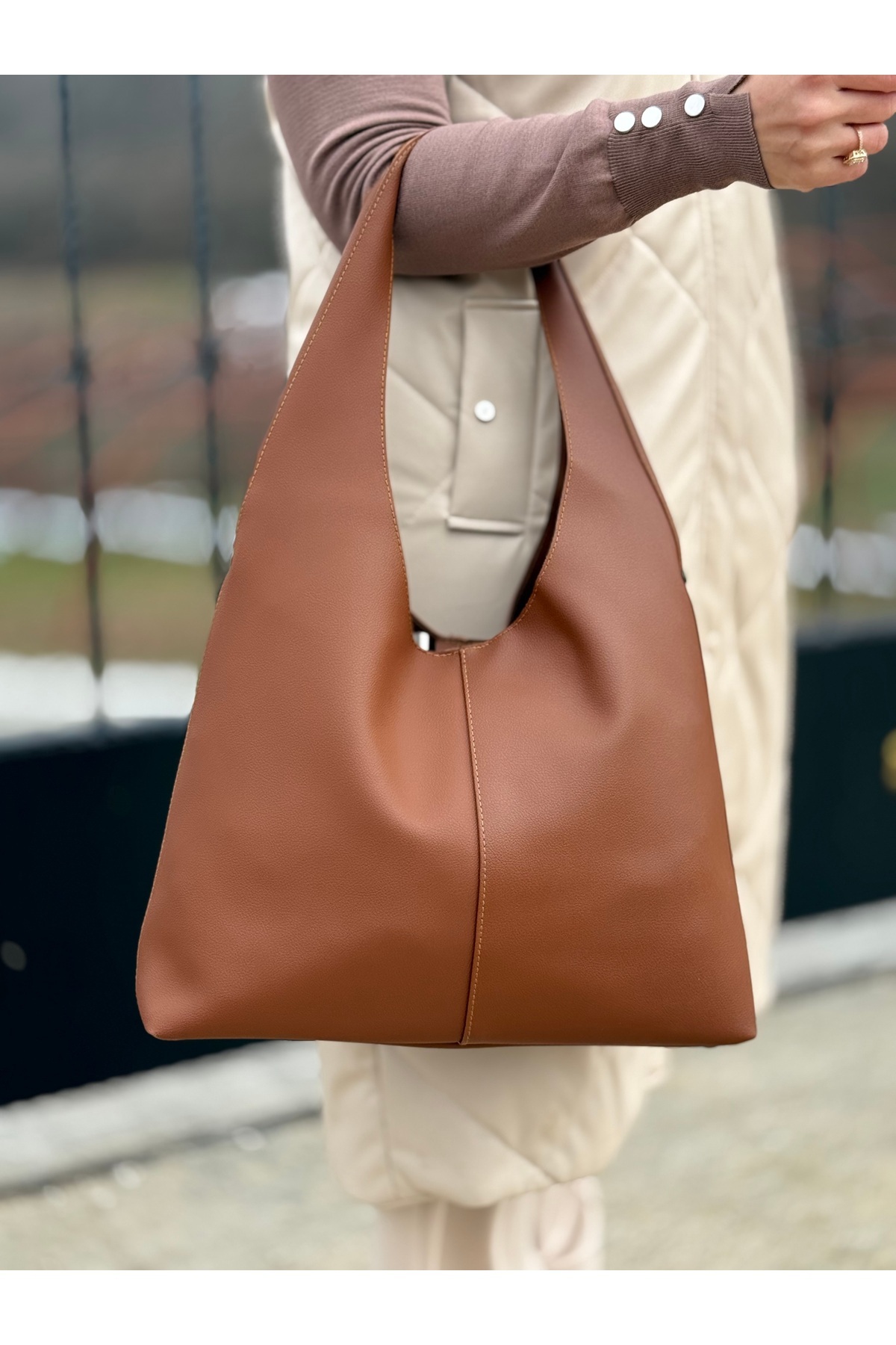 Taba Kadın Salaş Suni Deri Iç Bölmeli Çıtçıt Ve Fermuar Kapamalı Büyük Boy El Ve Omuz Çantası Taba Kadın Salaş Suni Deri Iç Bölmeli Çıtçıt Ve Fermuar Kapamalı Büyük Boy El Ve Omuz Çantası NÇS0040 Büyük Boy
