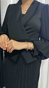 Kadın Özel Tasarım Piliseli Kruvaze Yaka Boncuk Püsküllü Abiye Elbise Kadın Özel Tasarım Piliseli Kruvaze Yaka Boncuk Püsküllü Abiye Elbise NPA01 XL