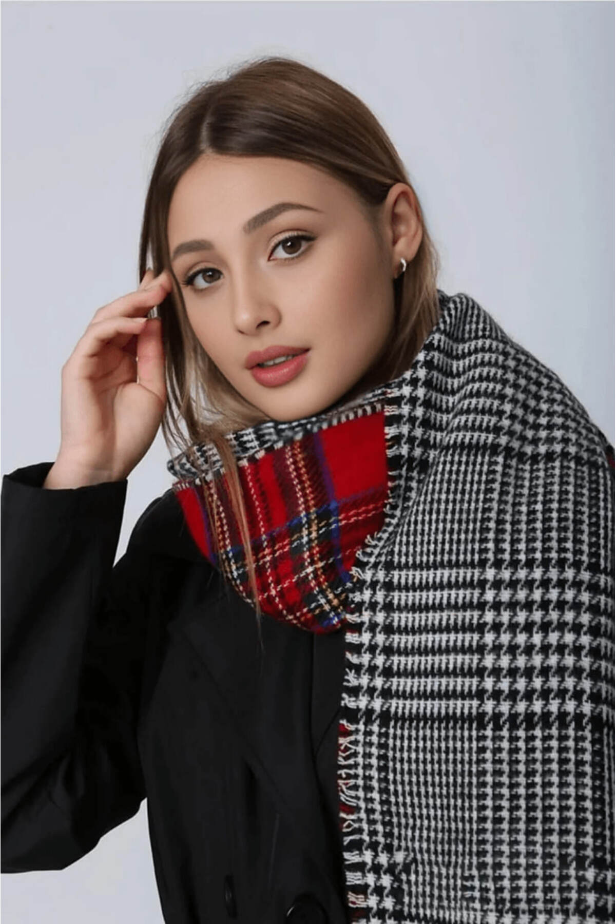Kırmızı Çift Taraflı Ekose Desenli Atkı - Şal 70x185 Cm AŞK2373 Kırmızı Çift Taraflı Ekose Desenli Atkı - Şal 70x185 Cm AŞK2373 75 x 180