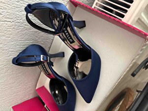 Bilekten Bantlı Kadeh Topuklu Lacivert Saten Ayakkabı Bilekten Bantlı Kadeh Topuklu Lacivert Saten Ayakkabı 41ESEX 40