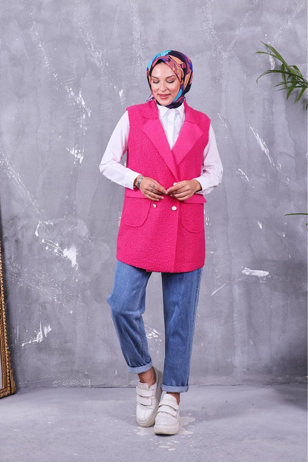 BUKLET PON PON KUMAŞ CEPLİ KAPAKLI KRUVAZE YAKA 4 DÜĞME YELEK BUKLET PON PON KUMAŞ CEPLİ KAPAKLI KRUVAZE YAKA 4 DÜĞME YELEK MAT40016 42