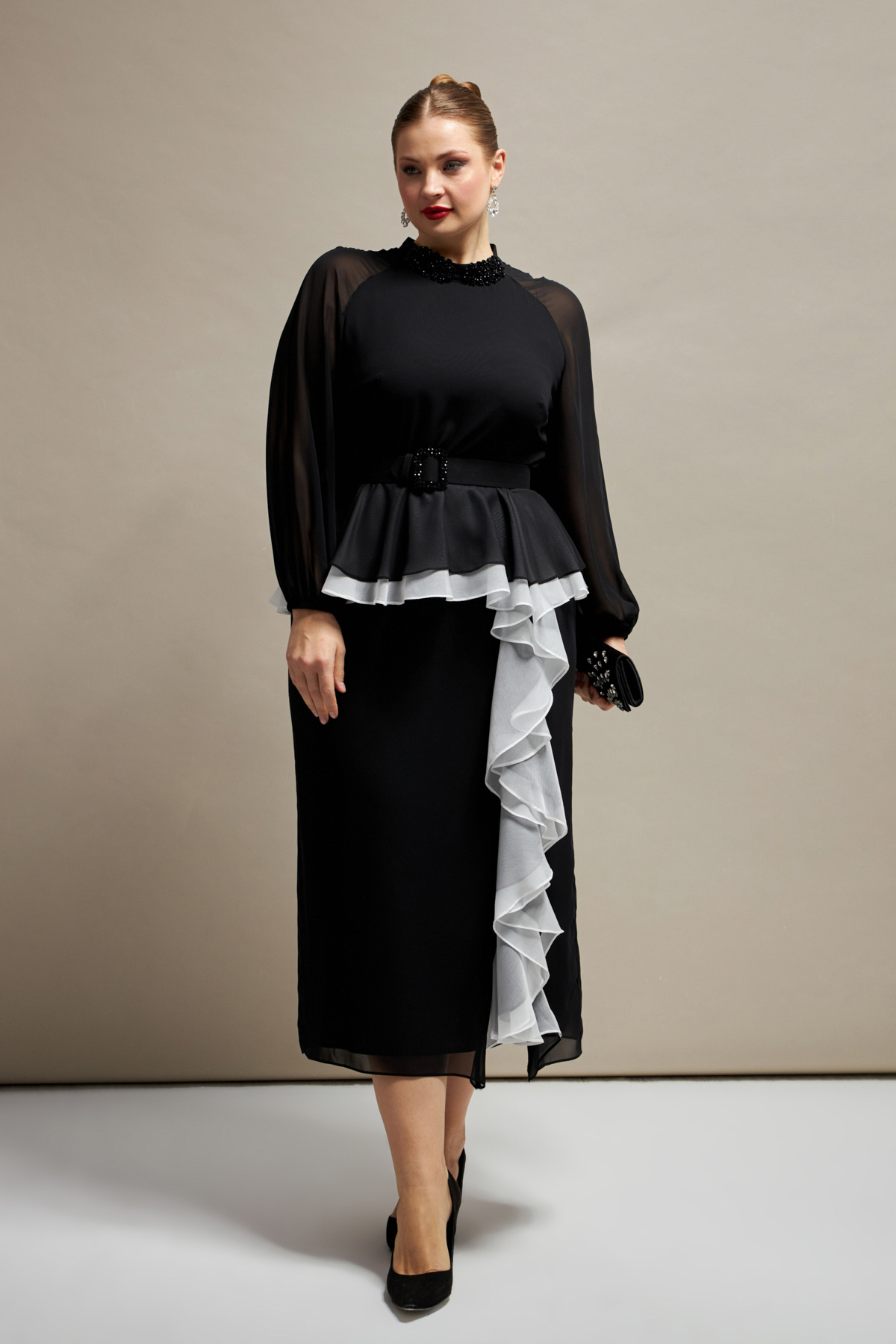 Yakası Işleme Detaylı Tunikli Elbiseli Abiye Takım Yakası Işleme Detaylı Tunikli Elbiseli Abiye Takım 702 50