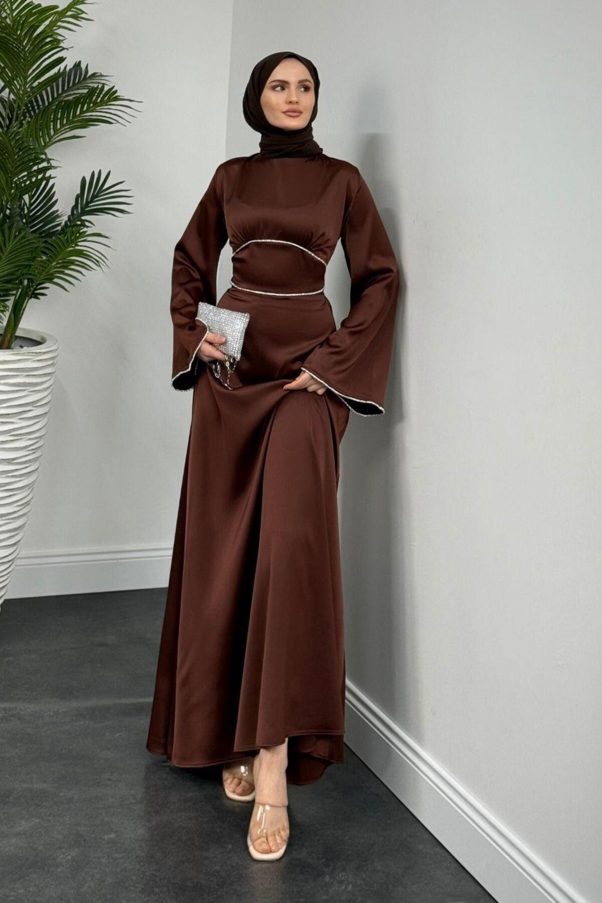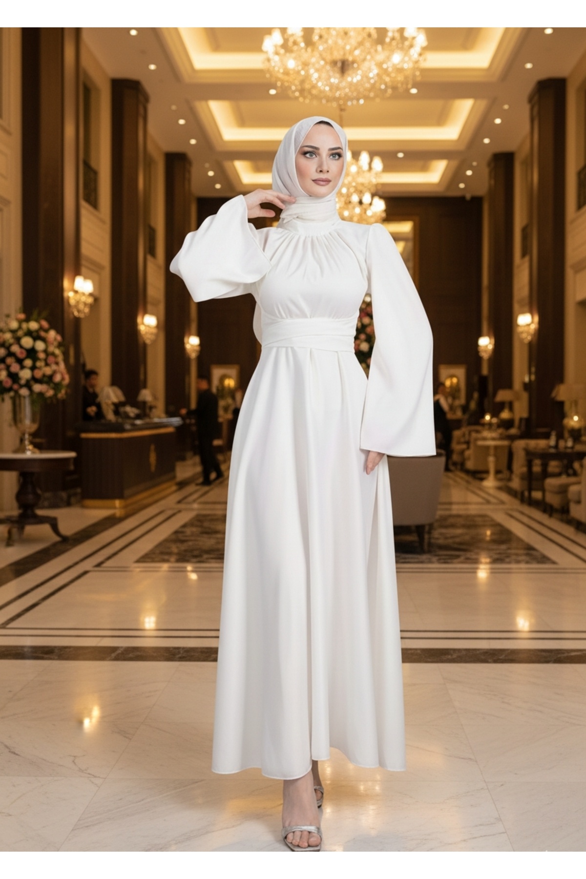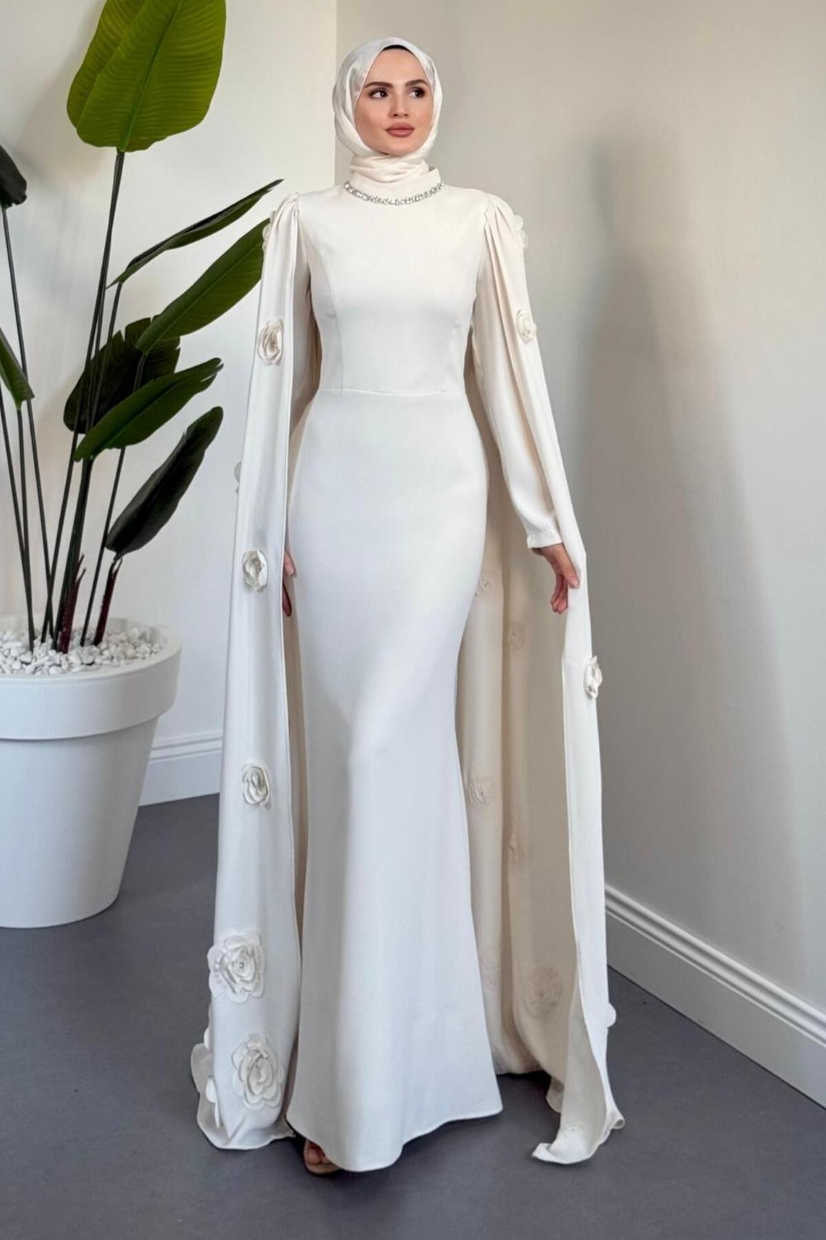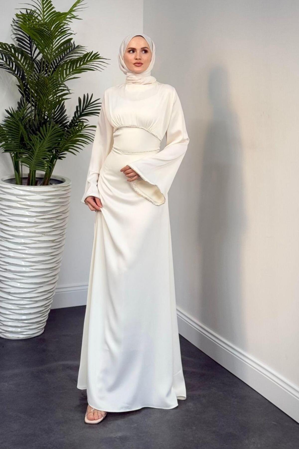 Vlasi Kolu Ve Beli Baget Taşlı Saten Abiye Beyaz Vlasi Kolu Ve Beli Baget Taşlı Saten Abiye Beyaz 6159 42