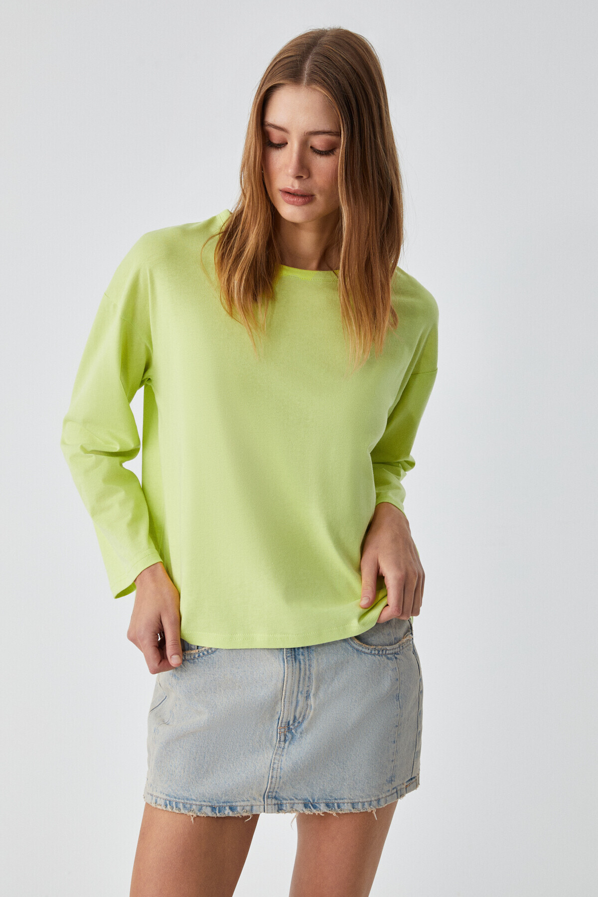 BASIL Kadını Oversize %100 Organik Pamuk Örme Uzun Kol Yeşil T-Shirt BASIL Kadını Oversize %100 Organik Pamuk Örme Uzun Kol Yeşil T-Shirt BASIL01112023 XL