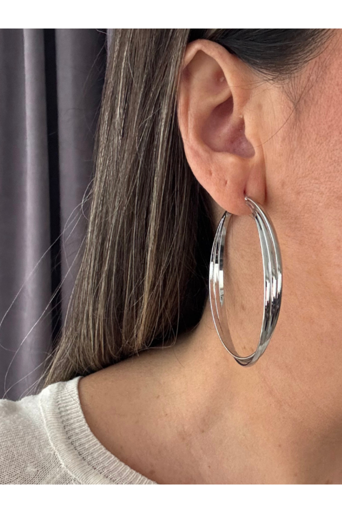 Asimetrik Büyük Halka Küpe Asimetrik Büyük Halka Küpe 25PKHLKBYKGS01 تک سایز