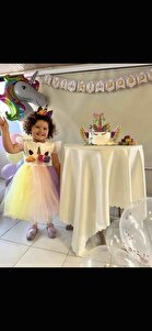 Kız Çocuk Renkli Doğum Günü Taçlı Rengarenk Unicorn Kurdeleli Fermuarlı Parti Elbisesi Kız Çocuk Renkli Doğum Günü Taçlı Rengarenk Unicorn Kurdeleli Fermuarlı Parti Elbisesi 0069 8 Yaş