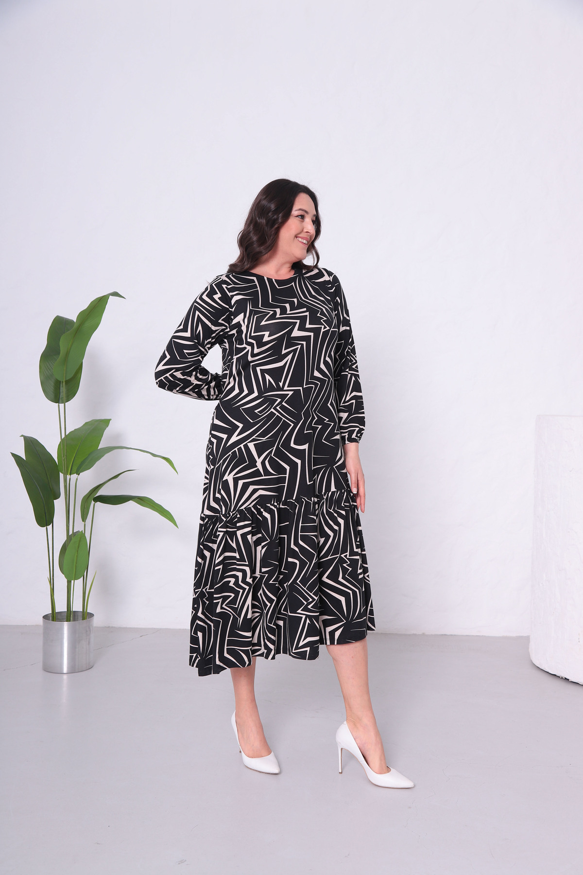 Kadın Büyük Beden Eteği Piliseli Elbise Siyah Kadın Büyük Beden Eteği Piliseli Elbise Siyah TC201323 58