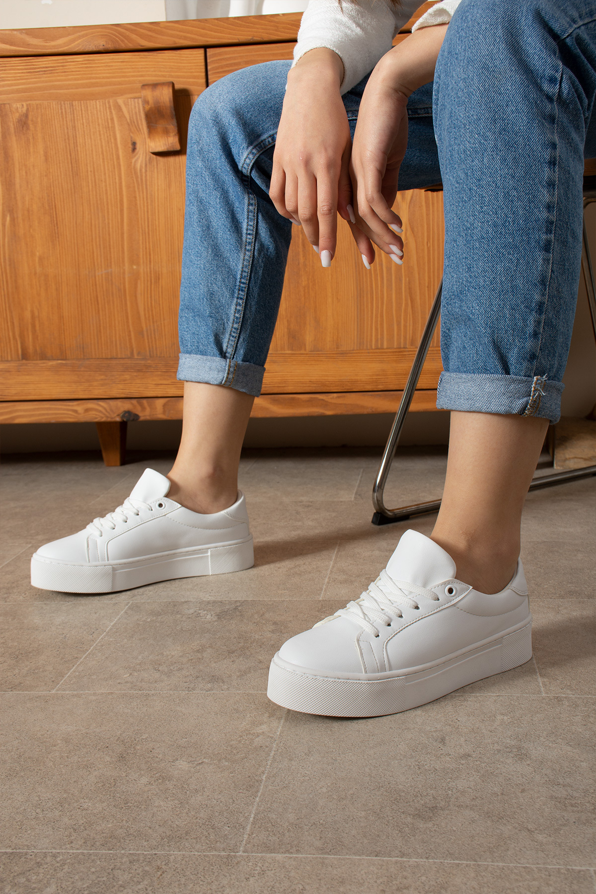 WİLE Bağcıklı Rahat Taban Beyaz Siyah Detaylı Kadın Spor WİLE Bağcıklı Rahat Taban Beyaz Siyah Detaylı Kadın Spor ws091 40
