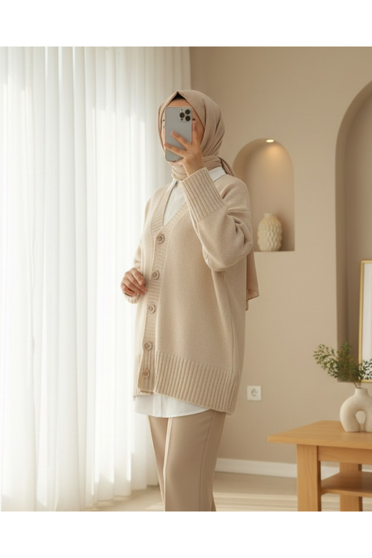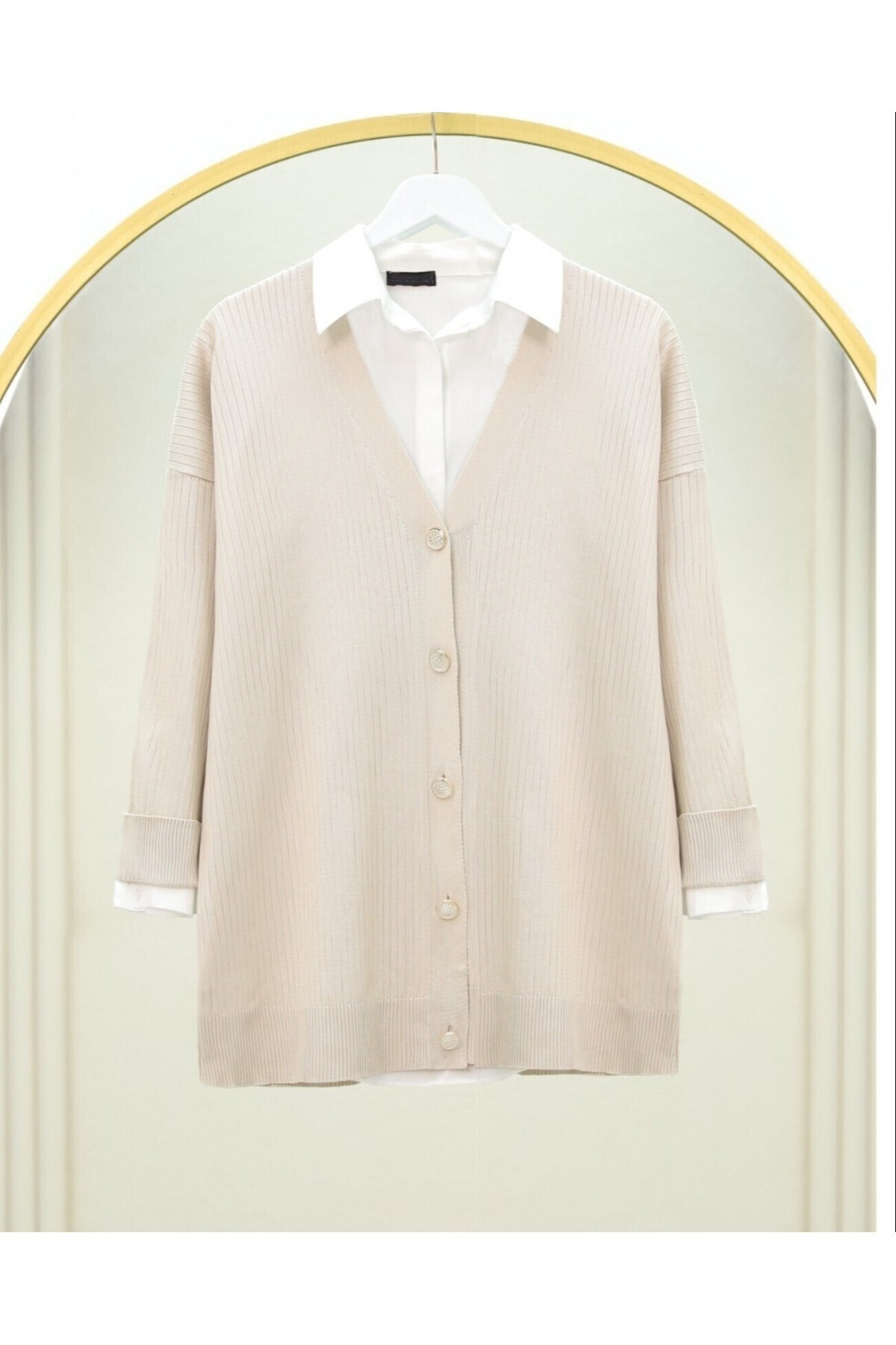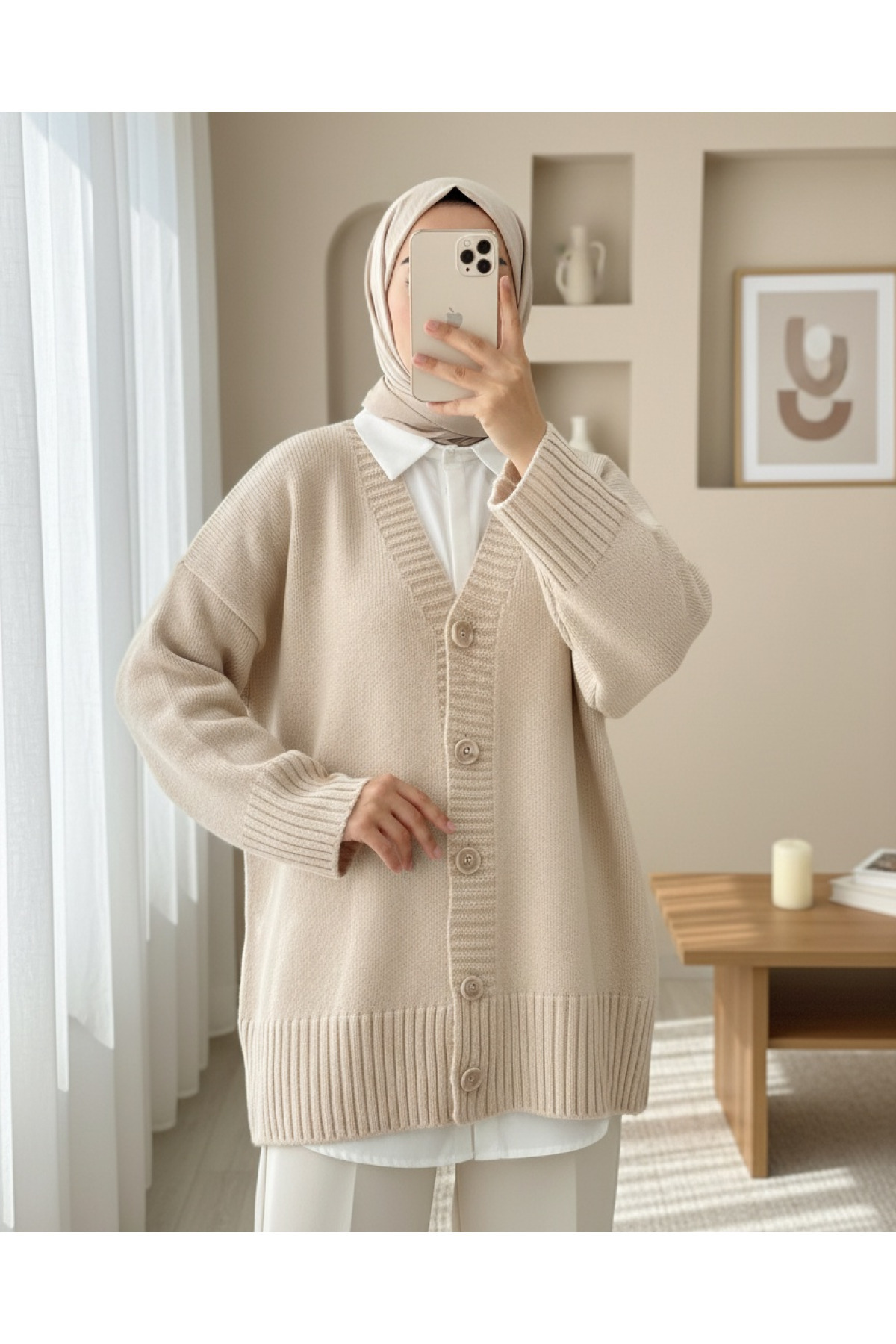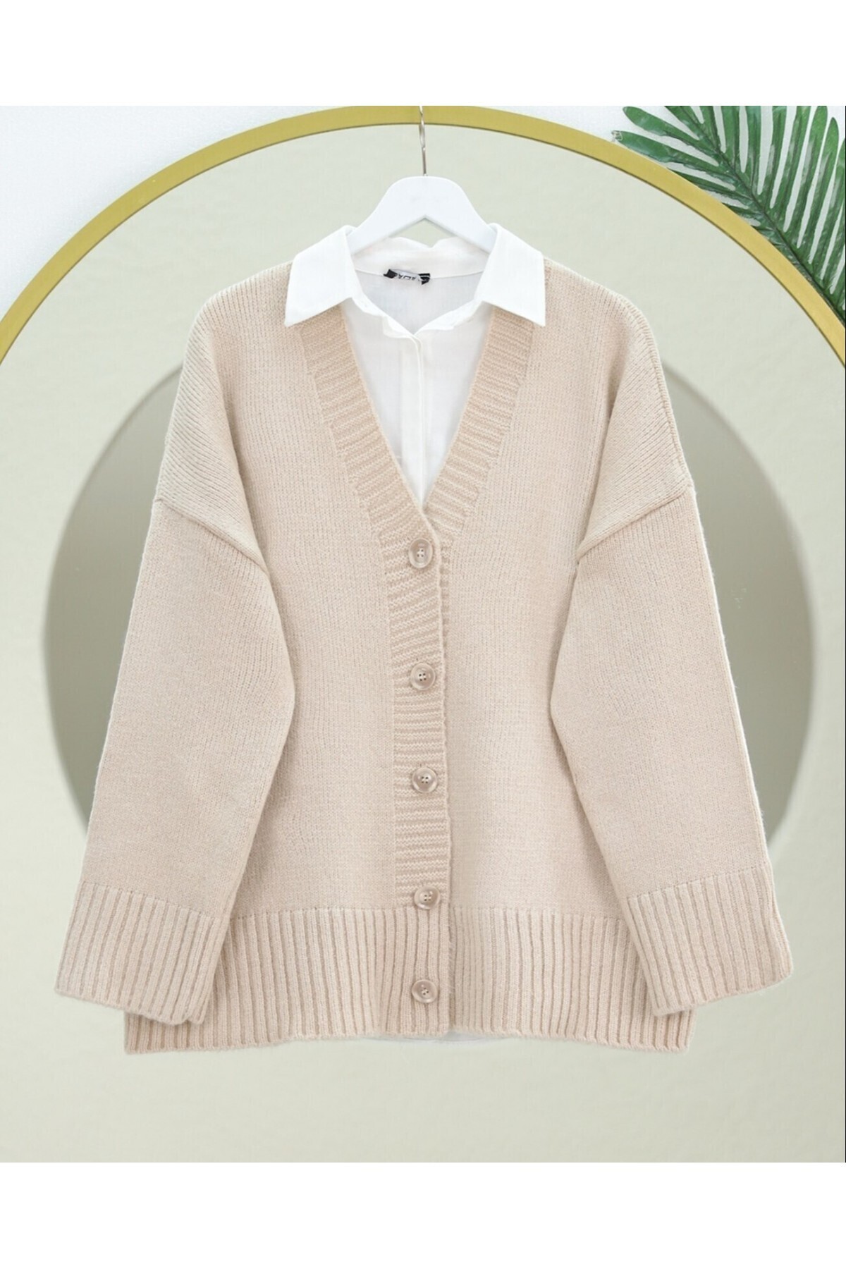 Düğmeli Oversize Triko Hırka -Bej Düğmeli Oversize Triko Hırka -Bej TY109-0869 Standart
