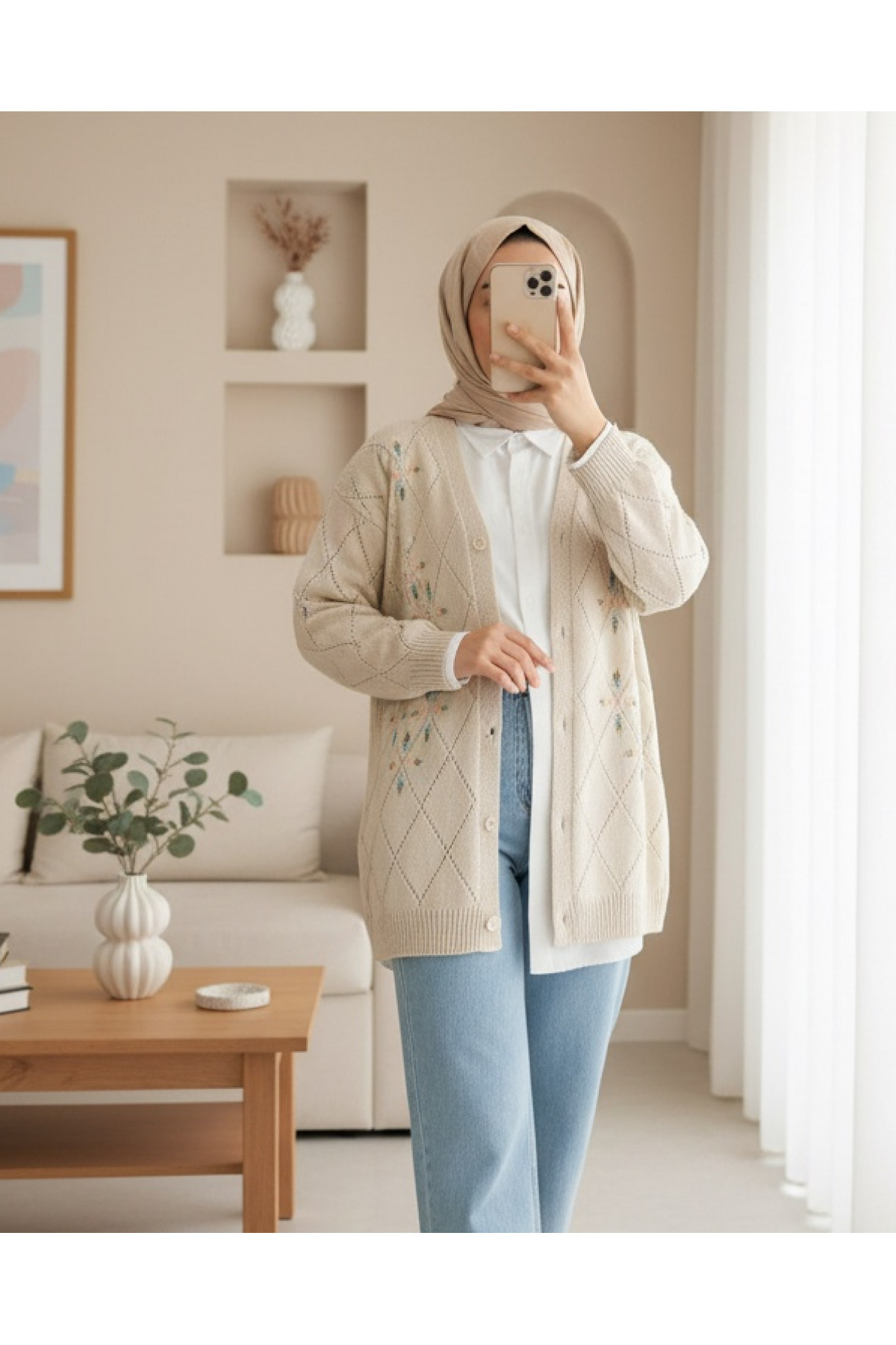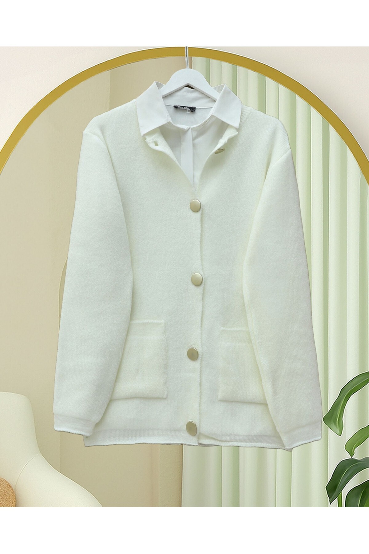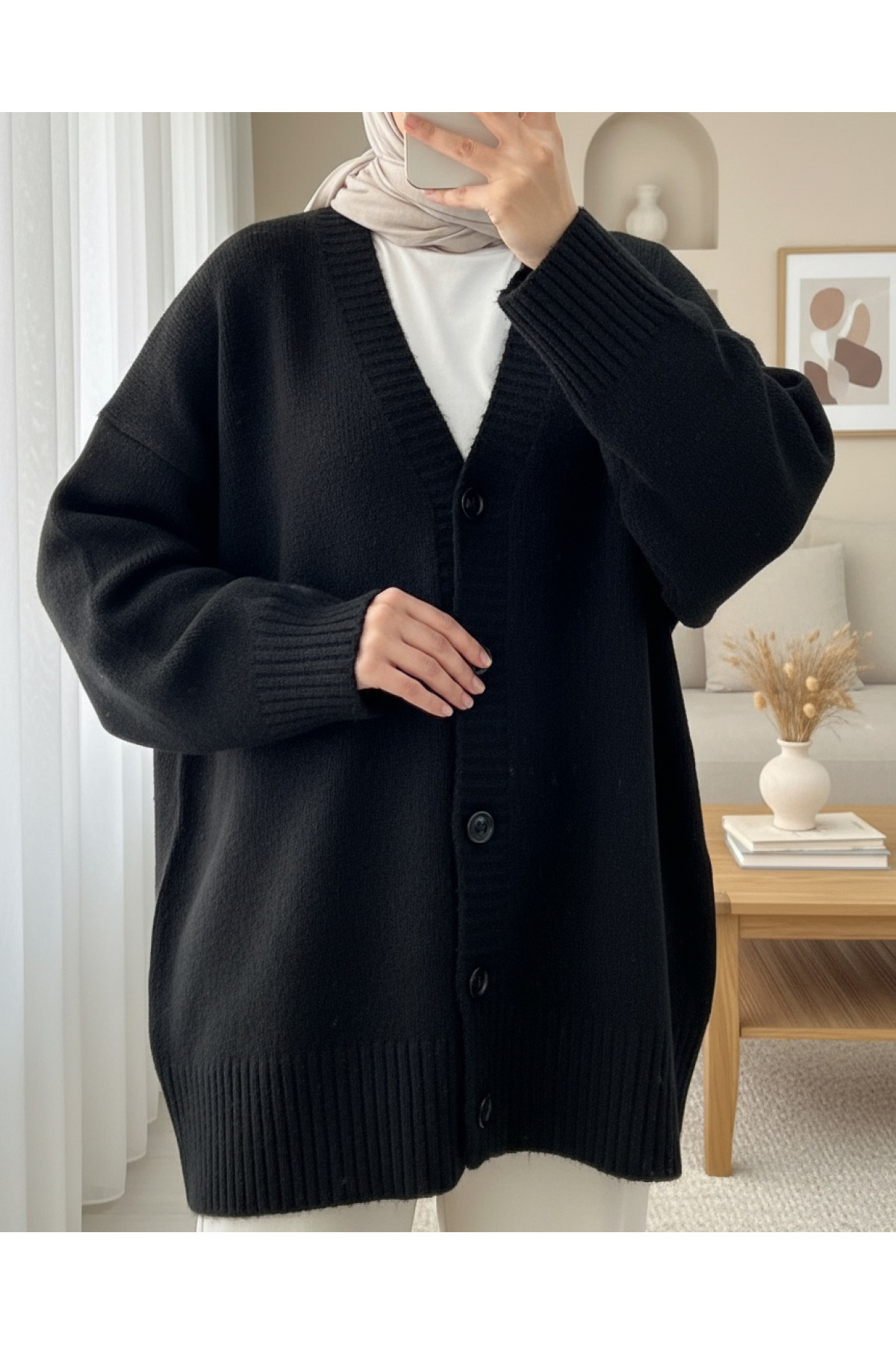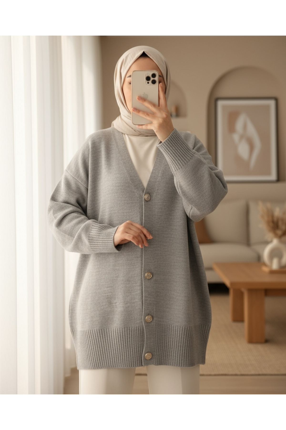 Düğmeli Oversize Triko Hırka -Bej Düğmeli Oversize Triko Hırka -Bej TY109-0869 Standart