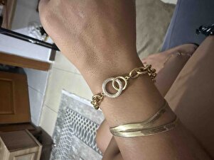 Altın Renk Zincir Detaylı Çelik Bileklik Altın Renk Zincir Detaylı Çelik Bileklik VT1300086 17 cm