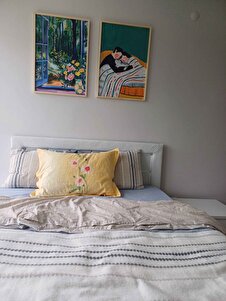 Rahat Çift ve Kedi Baskısı Ahşap Çerçeveli Yatak Odası Duvar Tablosu Rahat Çift ve Kedi Baskısı Ahşap Çerçeveli Yatak Odası Duvar Tablosu PİX-1L-1187 50 x 70