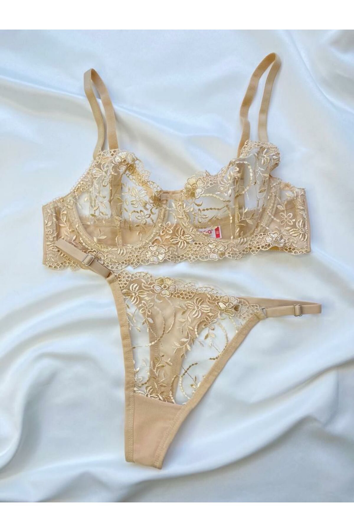 Dantelli büyük çiçekli iç çamaşır takımı Dantelli büyük çiçekli iç çamaşır takımı 27061988 90B