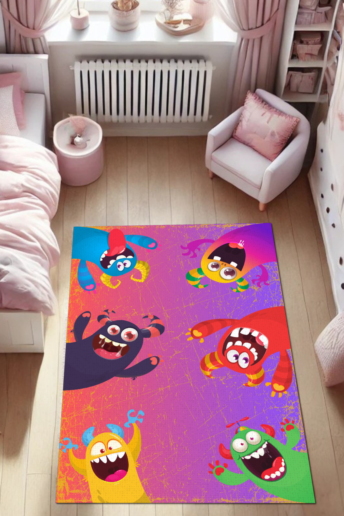 Renkli Sevimli Canavarlar Kaymaz Tabanlı Yıkanabilir Antialerjik Çocuk Halısı Renkli Sevimli Canavarlar Kaymaz Tabanlı Yıkanabilir Antialerjik Çocuk Halısı KID001 200 x 300