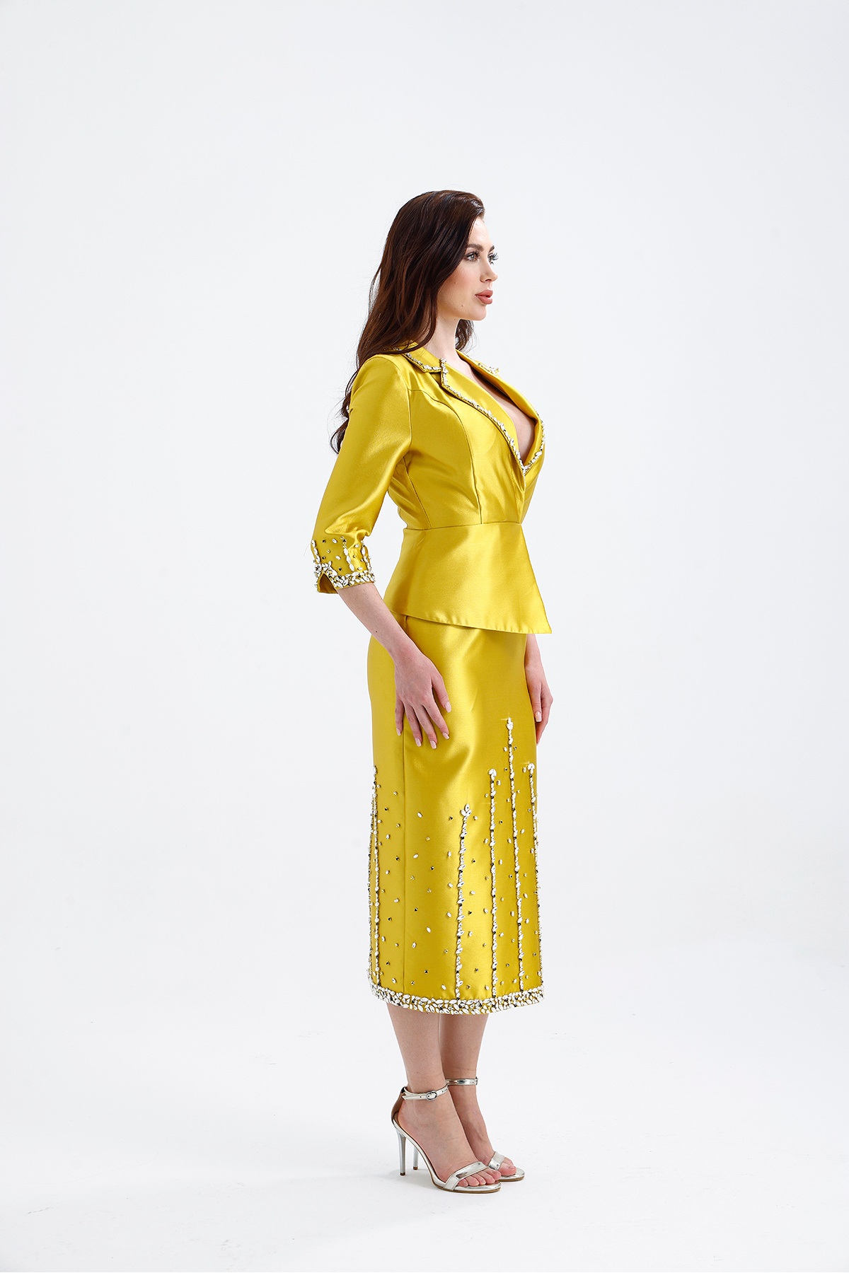 𝐃𝐈𝐀𝐍𝐀 Kruvaze Ceketli Taş İşlemeli Midi Boy Takım 𝐃𝐈𝐀𝐍𝐀 Kruvaze Ceketli Taş İşlemeli Midi Boy Takım AP0010 38