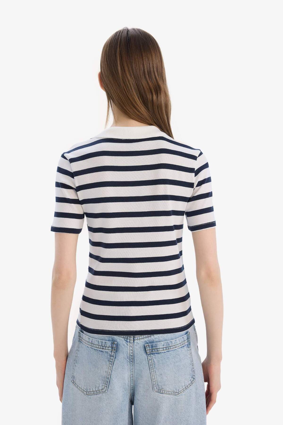 Slim Fit Dar Kesim Çizgili Polo Yaka Ribana Kısa Kollu Tişört E6989AX25SP Slim Fit Dar Kesim Çizgili Polo Yaka Ribana Kısa Kollu Tişört E6989AX25SP XL
