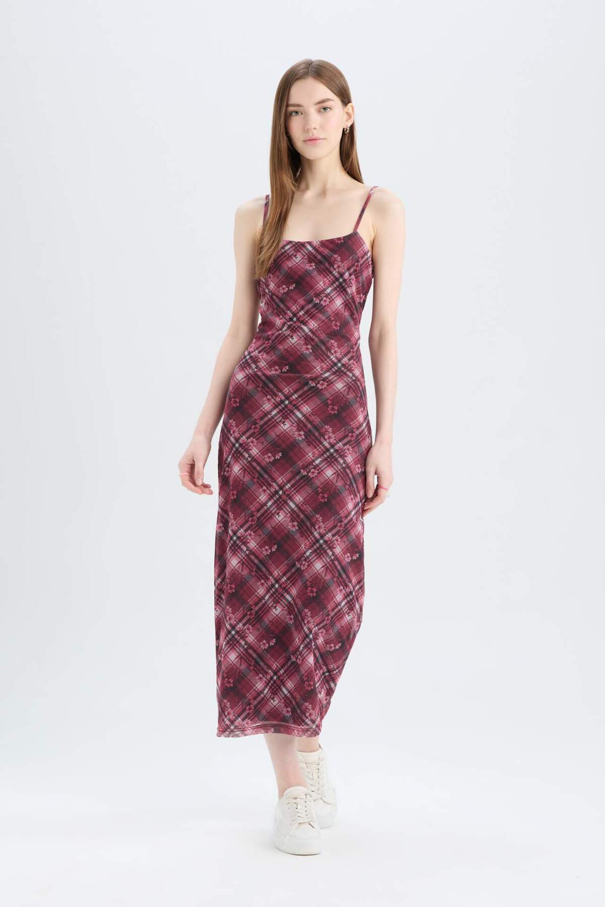 Bodycon Vücudu Saran Kareli Tül Askılı Maxi Elbise D5034AX25SP Bodycon Vücudu Saran Kareli Tül Askılı Maxi Elbise D5034AX25SP XL