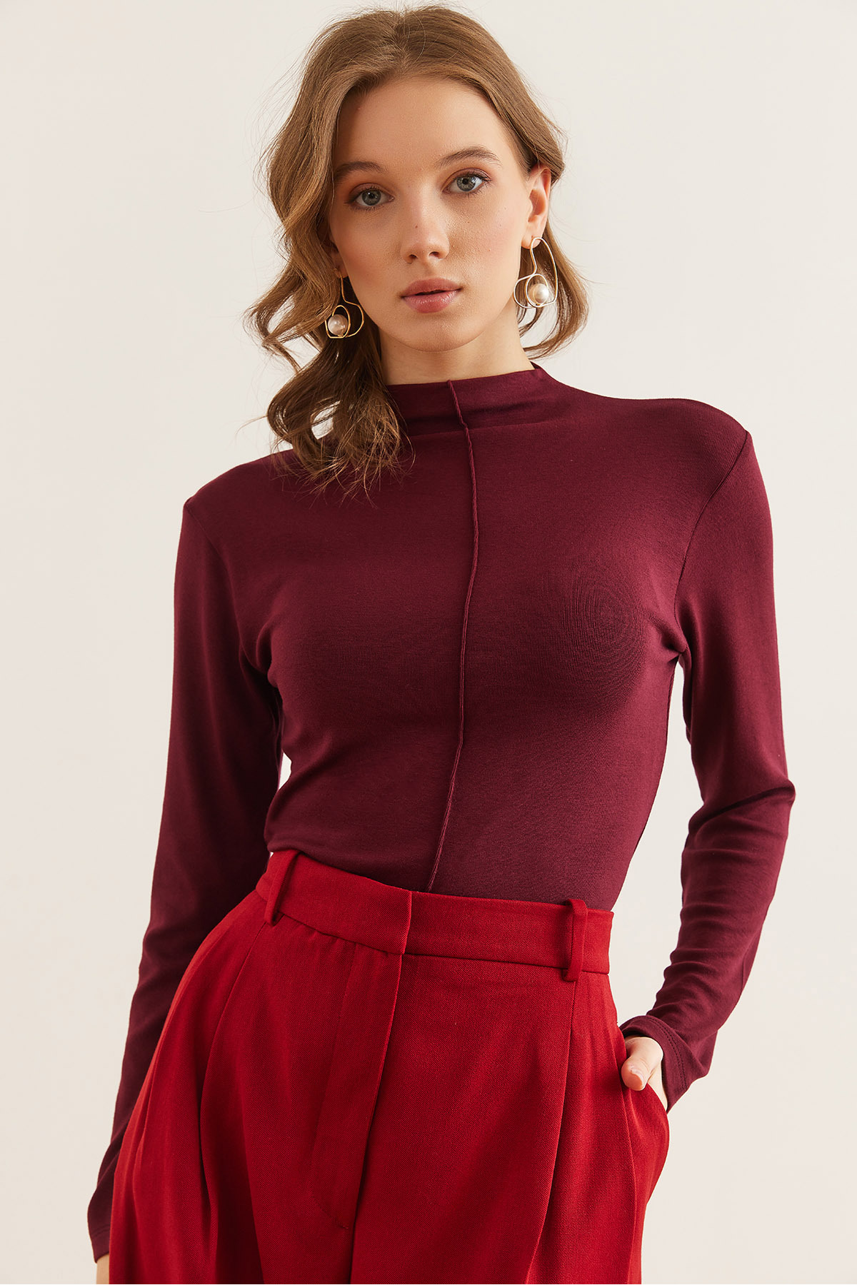 Kadın Bordo Omuzu Düğmeli Drape Detaylı Sandy Bluz BLZ-19002832 Kadın Bordo Omuzu Düğmeli Drape Detaylı Sandy Bluz BLZ-19002832 L