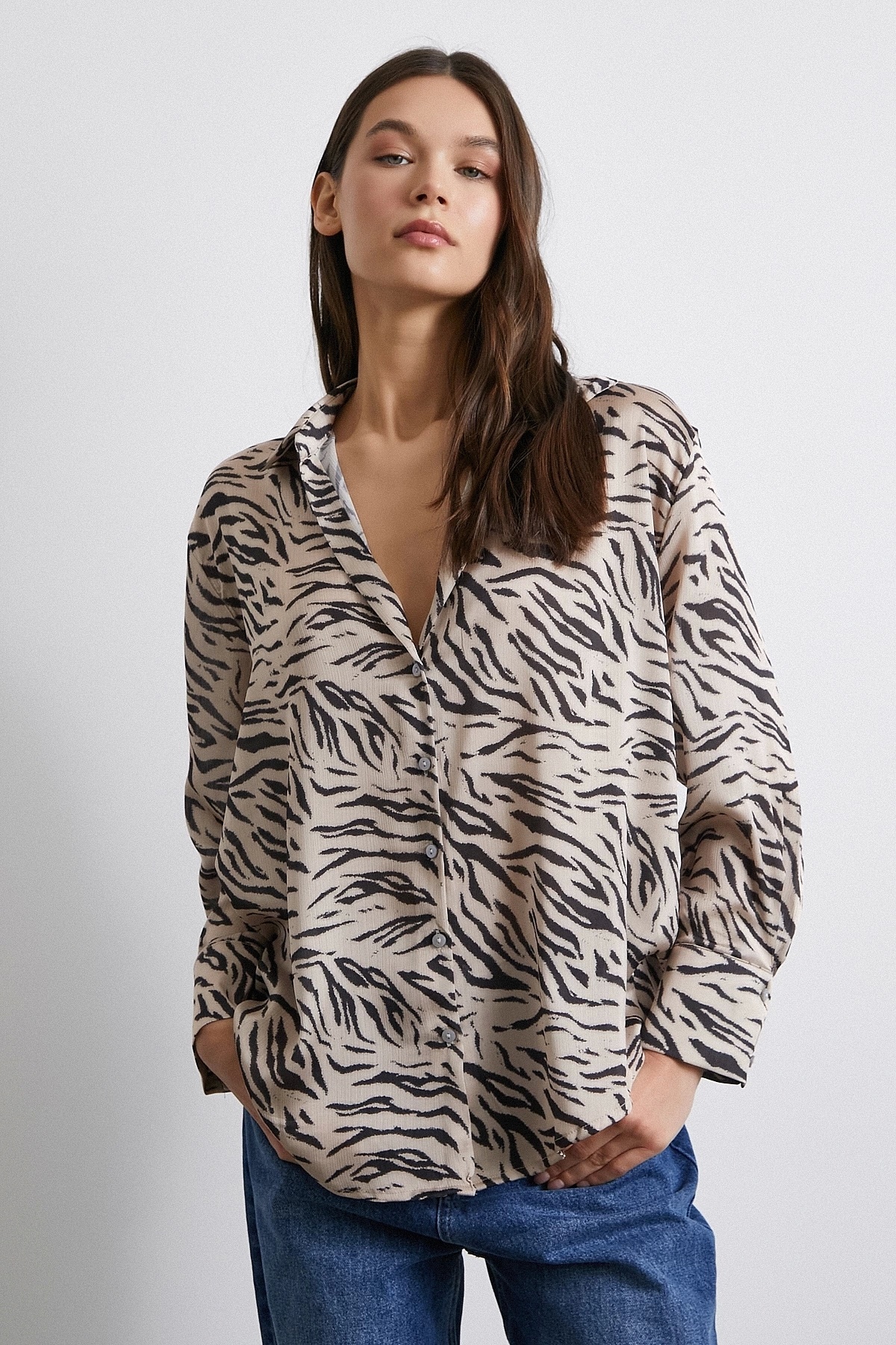 Zebra Desen V Yaka Gömlek Taş Zebra Desen V Yaka Gömlek Taş NM25S102301 L