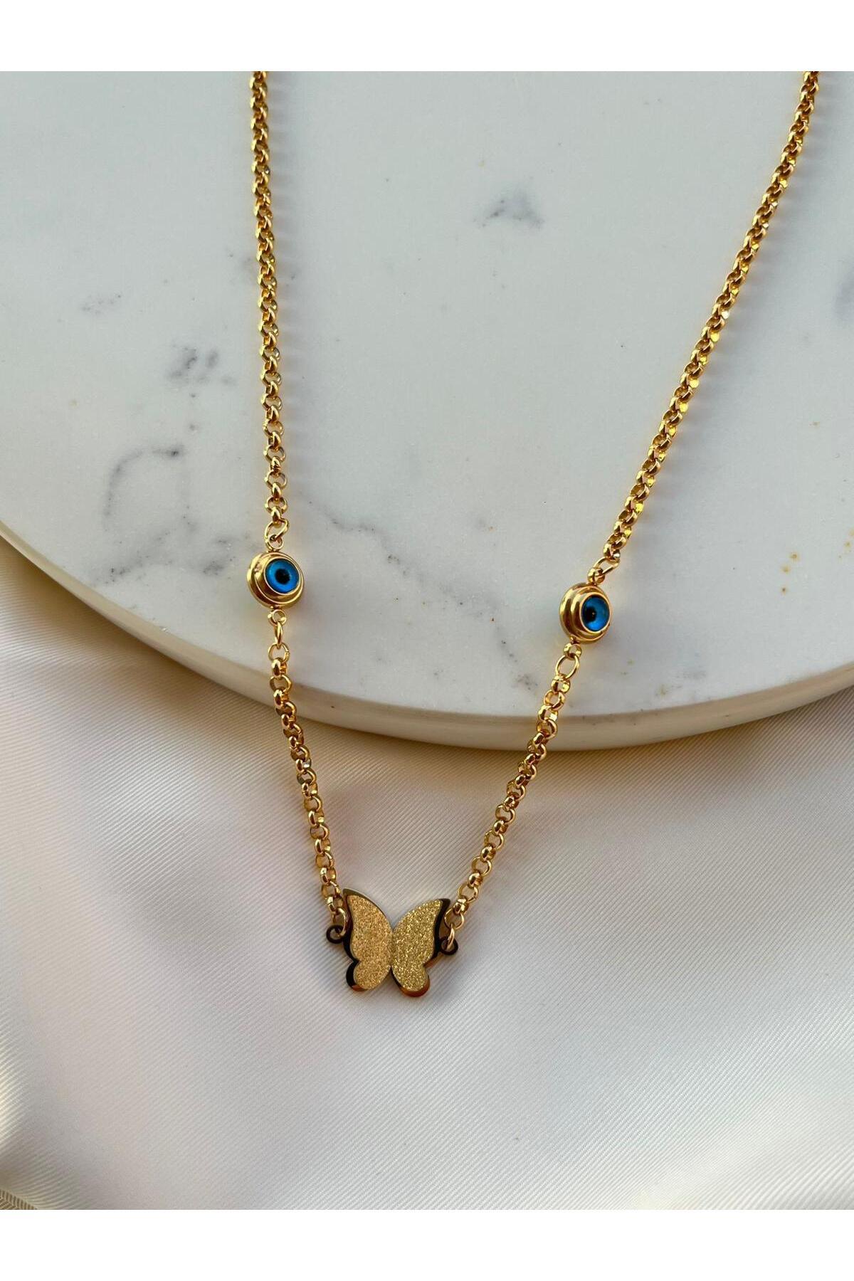 Nazar Boncuklu C Harfi Gold Çelik Kolye Nazar Boncuklu C Harfi Gold Çelik Kolye KL087 41 cm