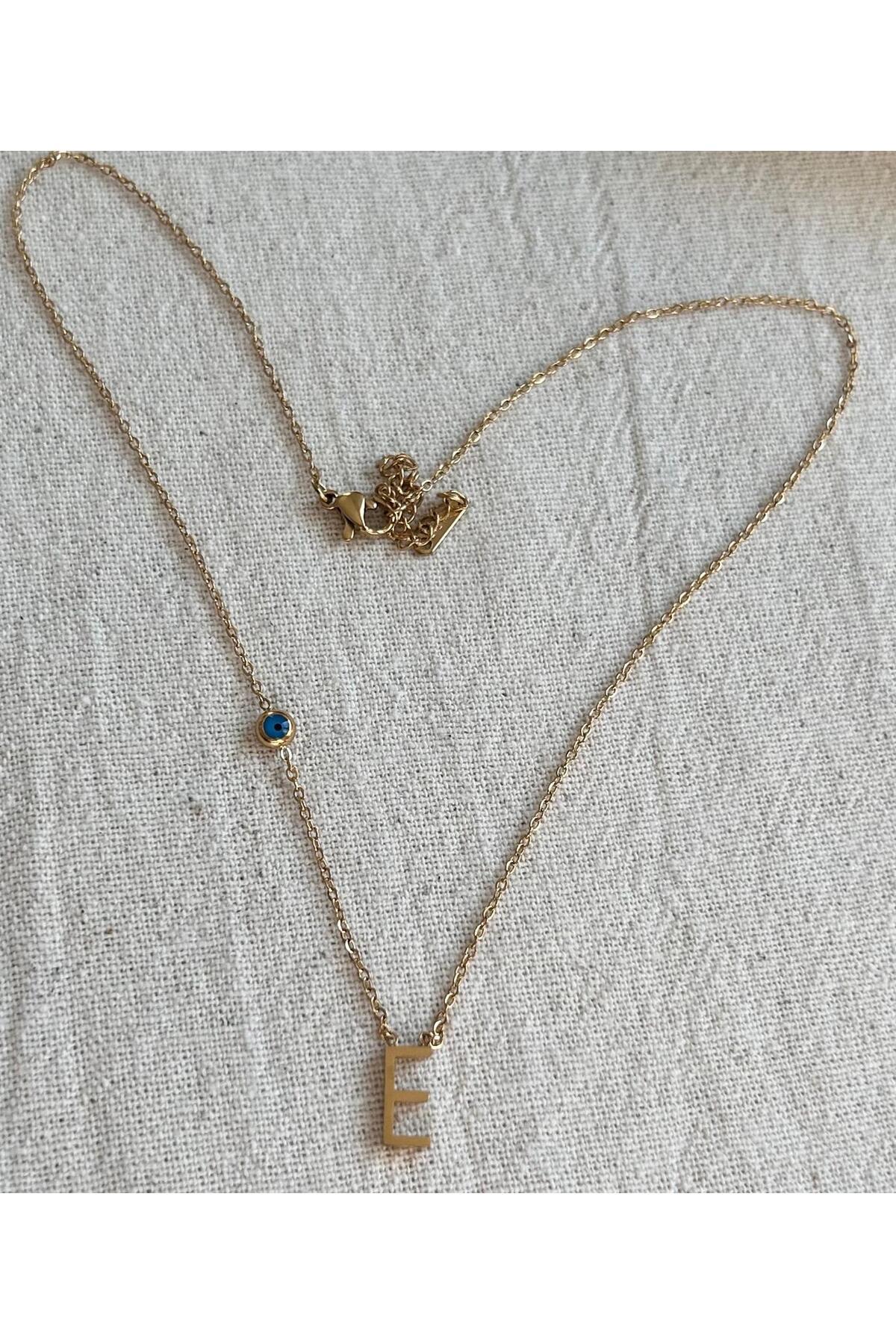Nazar Boncuklu E Harfi Gold Çelik Kolye Nazar Boncuklu E Harfi Gold Çelik Kolye KL089 41 cm
