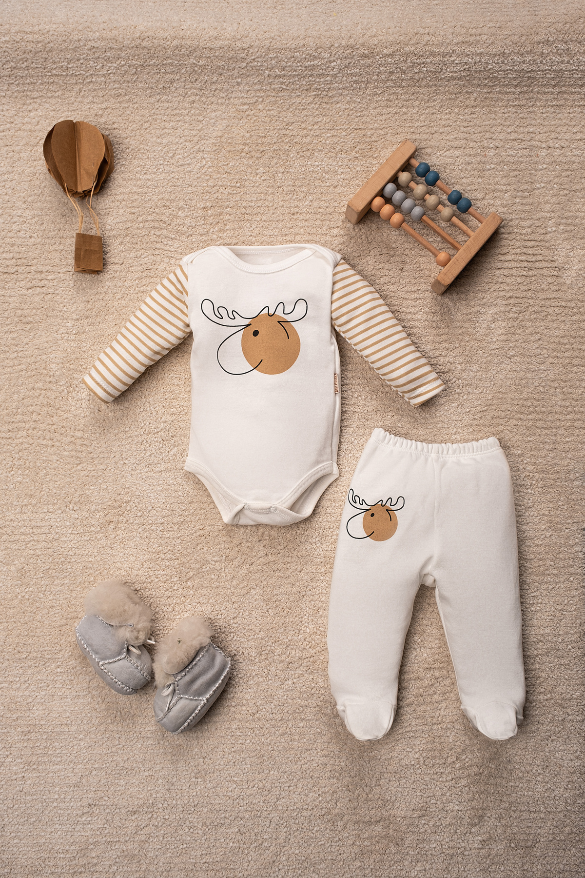 Geyik Desenli Alt Üst 6 Parça 3'lü Set Bebek Takımı Geyik Desenli Alt Üst 6 Parça 3'lü Set Bebek Takımı MPN3 6-9 AY