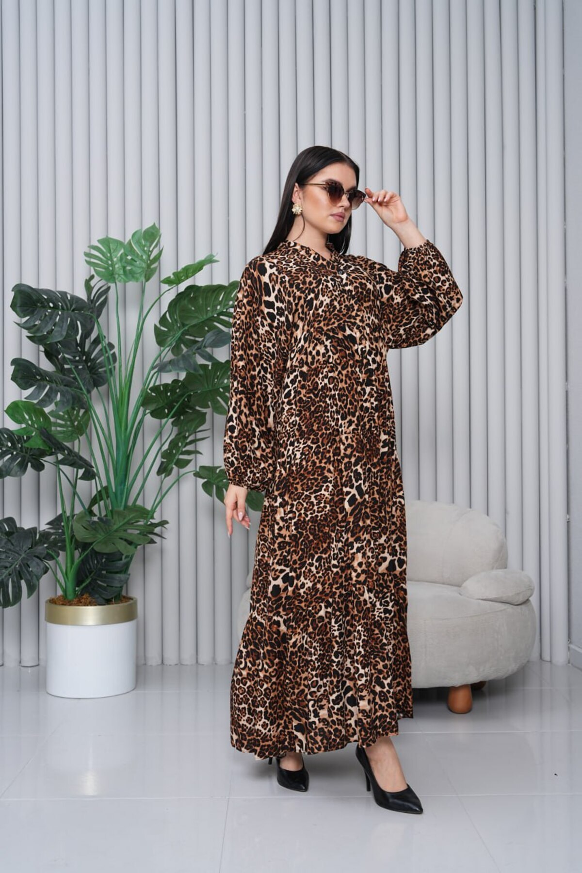 Kadın Kahverenk Bej Düğme Kapamalı Patlı Yakalı Leopar Desenli Salaş Balon Kollu Uzun Elbise Kadın Kahverenk Bej Düğme Kapamalı Patlı Yakalı Leopar Desenli Salaş Balon Kollu Uzun Elbise 2057-ALA XL/2XL