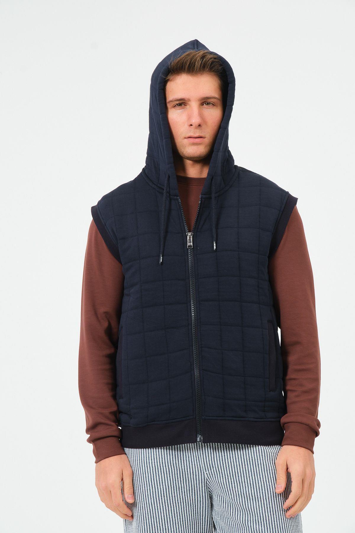 Erkek Lacivert Mevsimlik Kapüşonlu Yelek Mont Erkek Lacivert Mevsimlik Kapüşonlu Yelek Mont erkekyelek 2XL