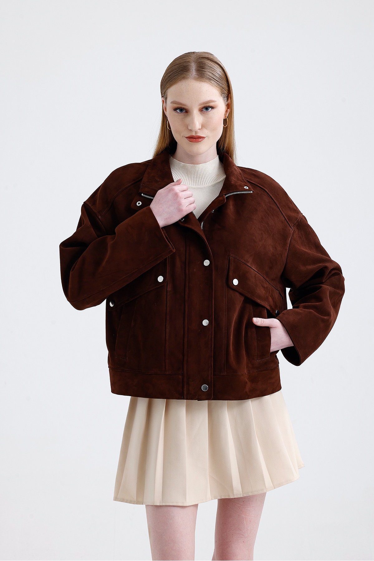 Kahve Süet Kadın Oversize Ceket Kahve Süet Kadın Oversize Ceket Z25150 3XL