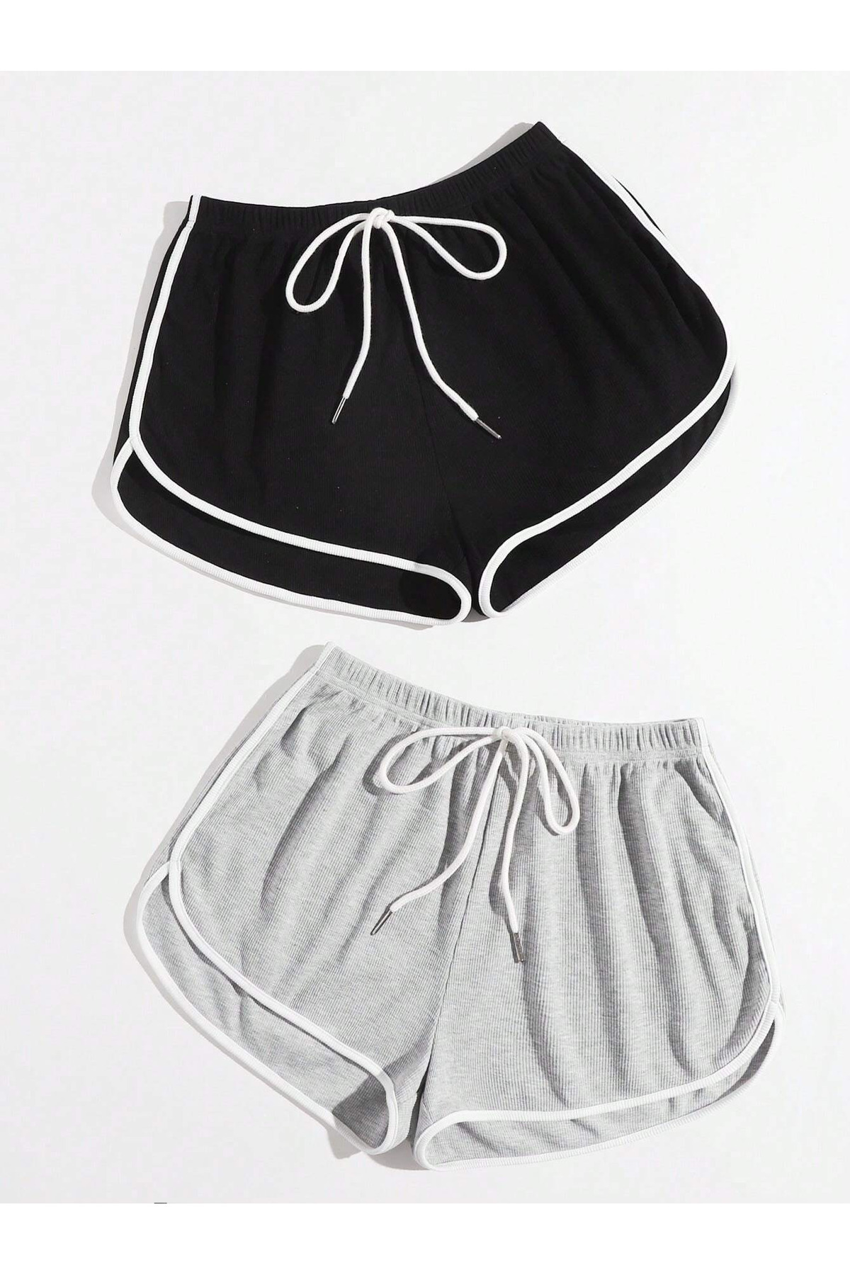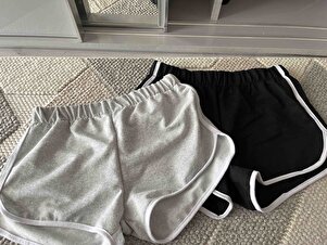 Kadın Siyah Gri Yan Şeritli 2'Li Paket Mini Şort Kadın Siyah Gri Yan Şeritli 2'Li Paket Mini Şort seritlikadinsort-01 L