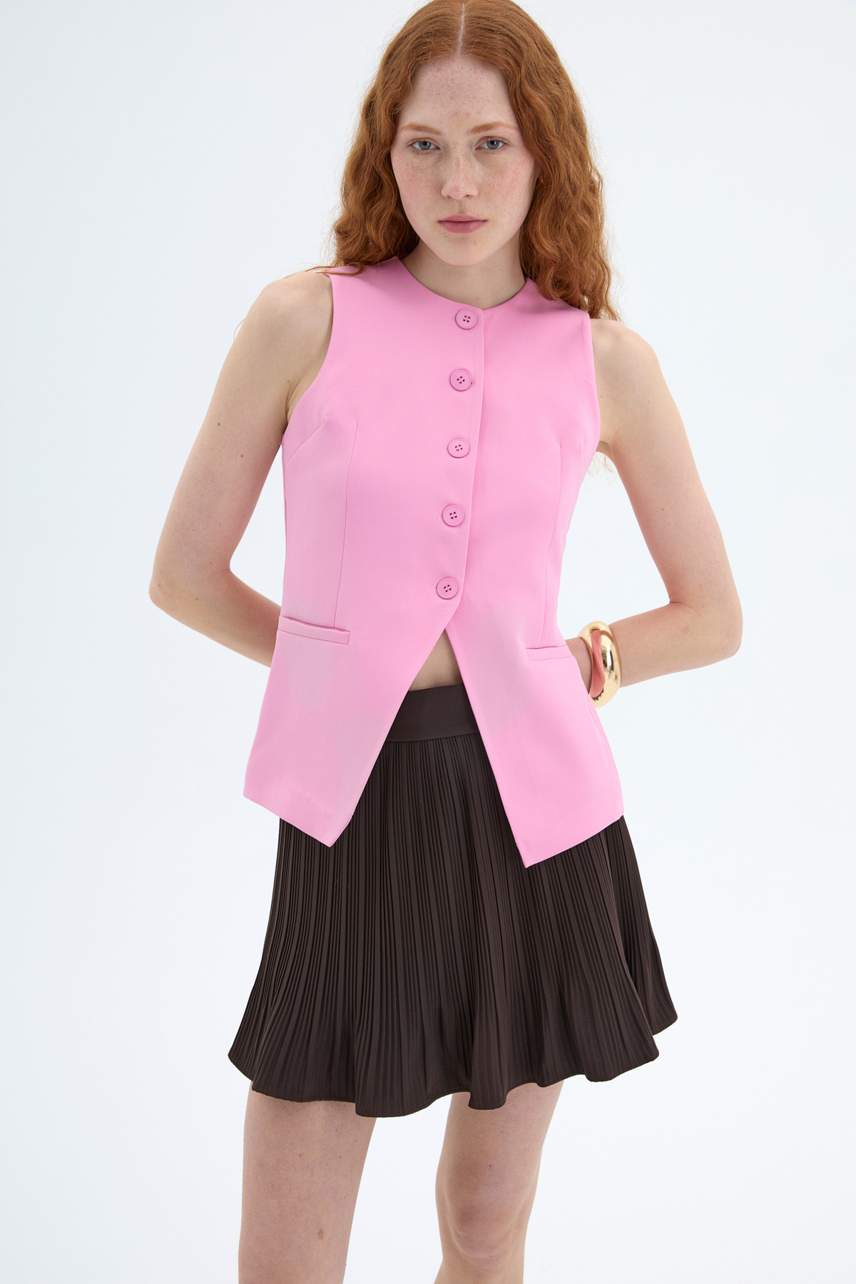 Düğmeli V Kesim Kolsuz Yelek Kırmızı Düğmeli V Kesim Kolsuz Yelek Kırmızı TYCEA6FC44B5A39300 L