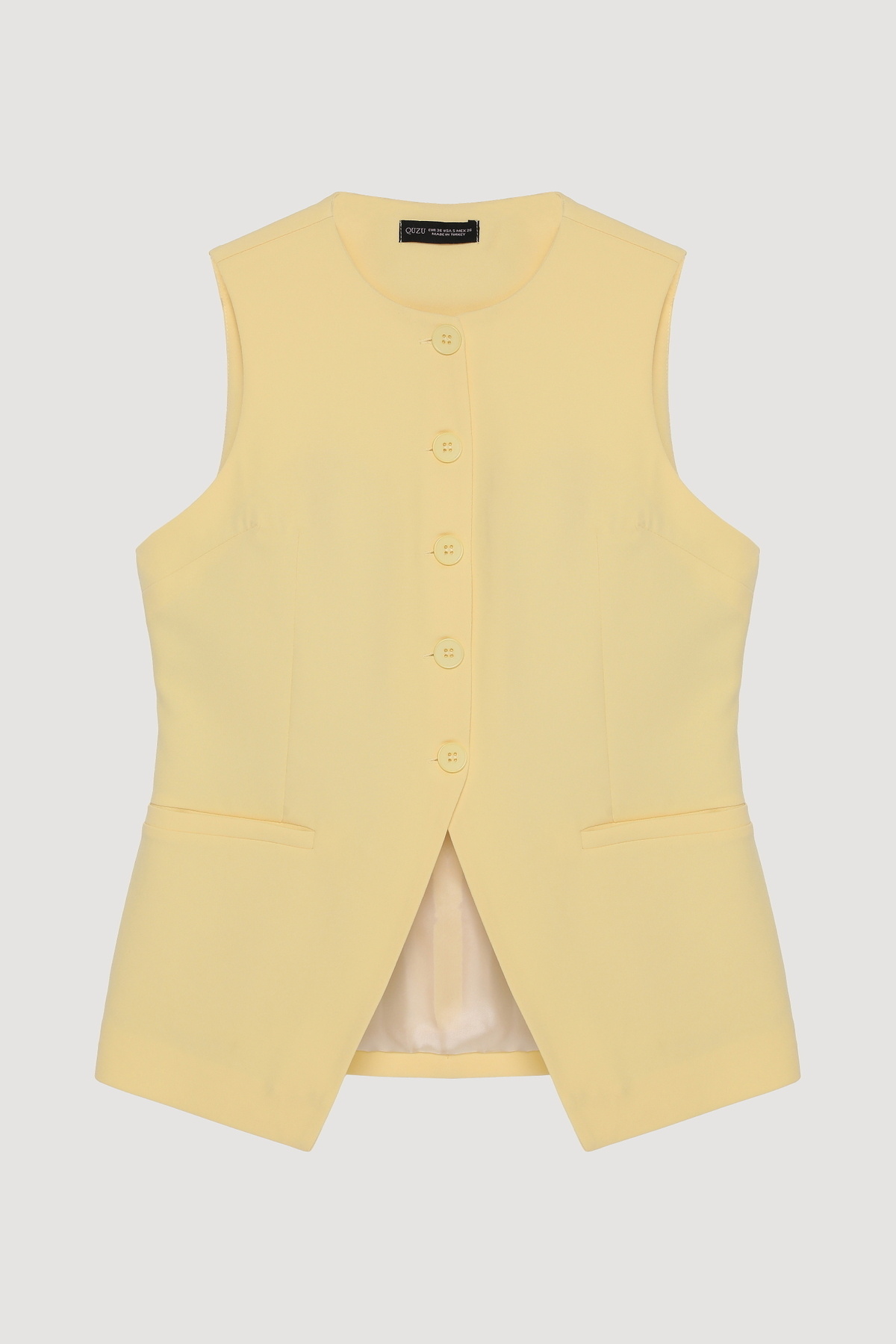 Düğmeli V Kesim Kolsuz Yelek Sarı Düğmeli V Kesim Kolsuz Yelek Sarı 25YYLK00004 L