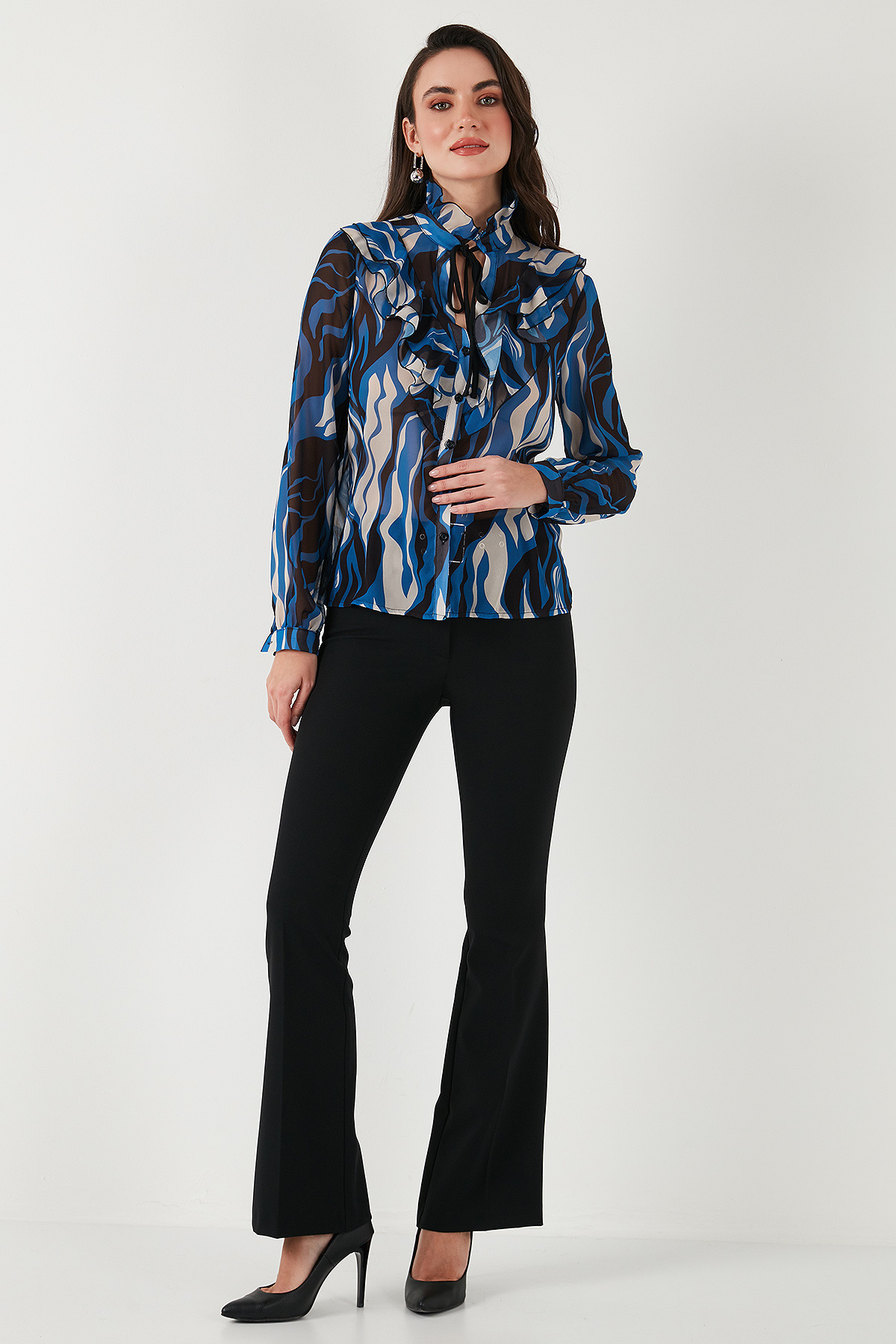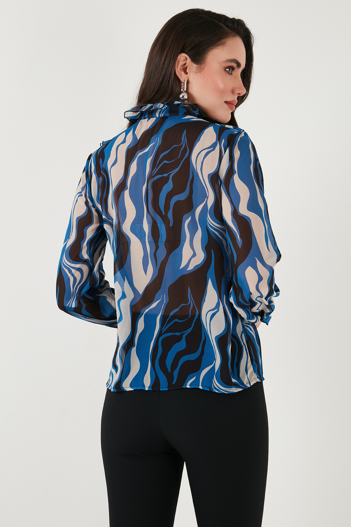 Desenli Bağlamalı V Yaka Şifon Gömlek GÖMLEK 611GO0192 Desenli Bağlamalı V Yaka Şifon Gömlek GÖMLEK 611GO0192 XL