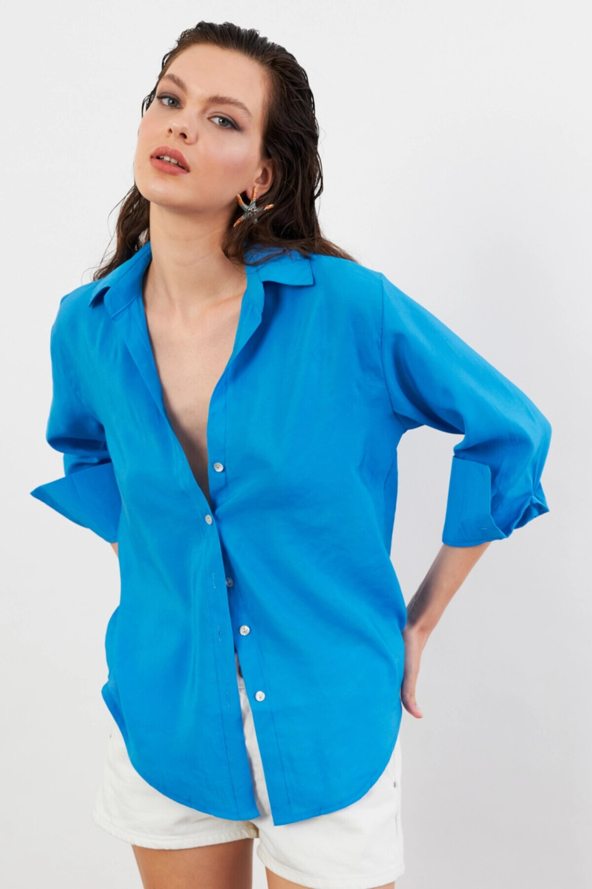 Kadın Mavi Çizgili Oversize Gömlek ZER420 Kadın Mavi Çizgili Oversize Gömlek ZER420 L