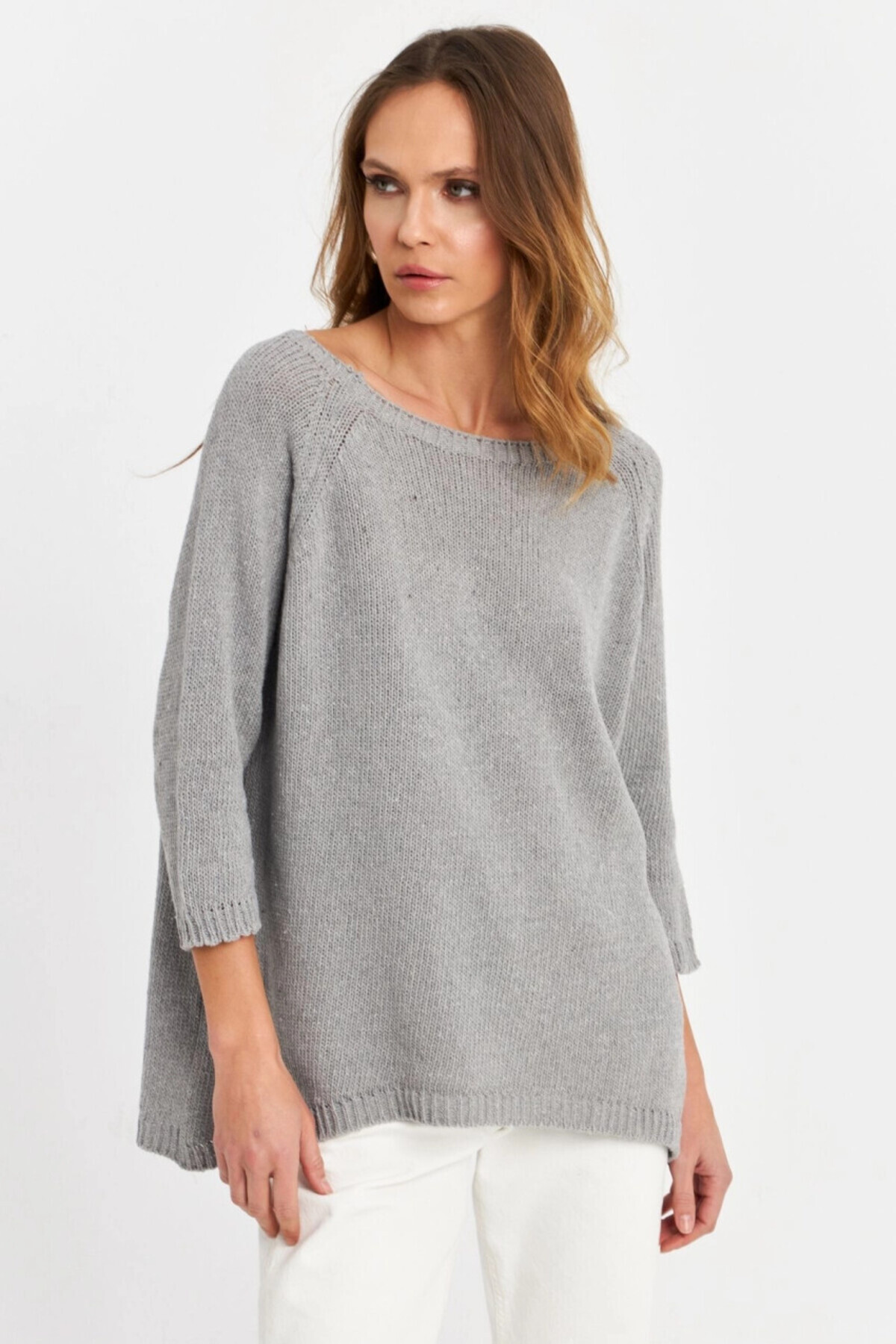 Kadın Gri Sırtı Damla Triko Bluz YV267 Kadın Gri Sırtı Damla Triko Bluz YV267 تک سایز