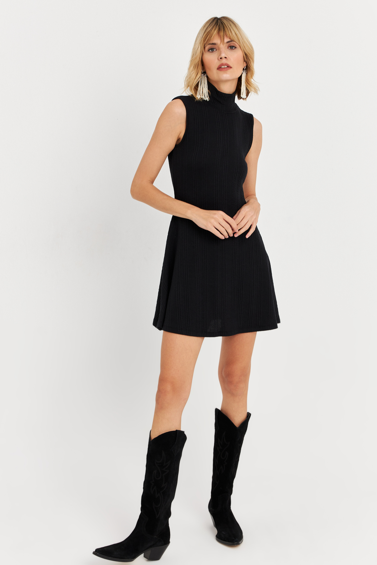 Kadın Siyah Tül Detaylı Pencereli Mini Elbise EY3043 Kadın Siyah Tül Detaylı Pencereli Mini Elbise EY3043 L