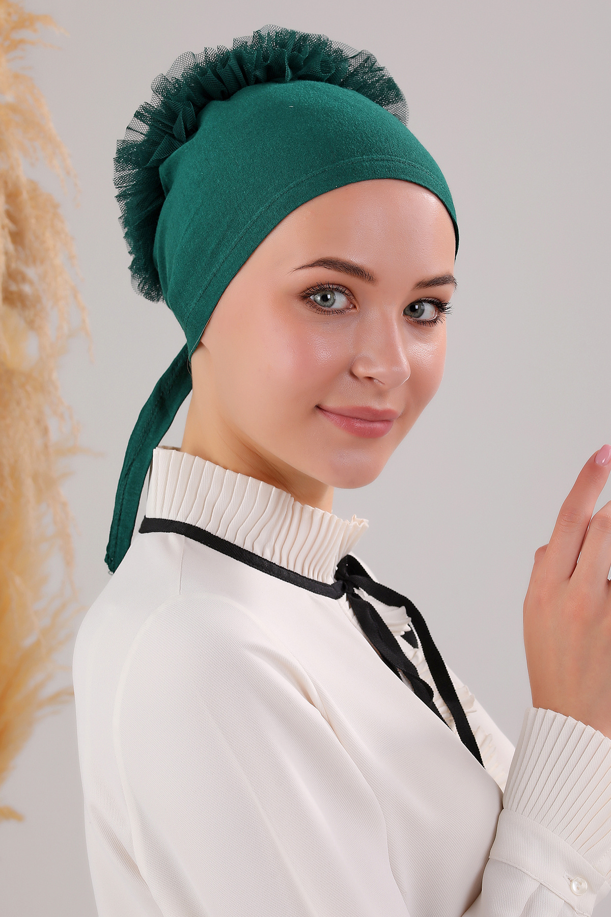 Kadın Tesettür 3'lü Fırfırlı Dikişli Bone Zümrüt Yeşili Kadın Tesettür 3'lü Fırfırlı Dikişli Bone Zümrüt Yeşili MLDTFB060901 Standart