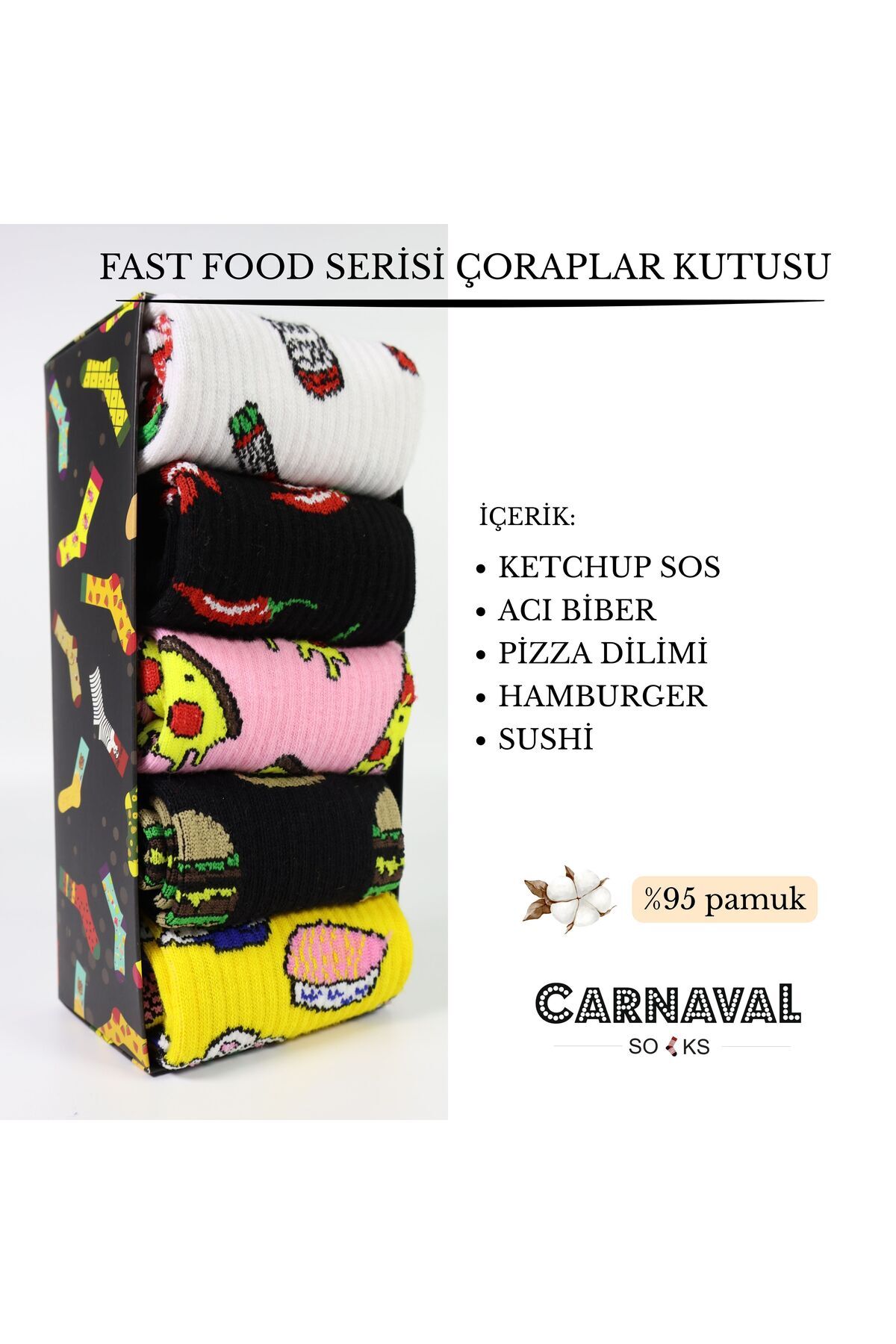 6'lı Fast Food ve yemek temalı Çorap Seti 6'lı Fast Food ve yemek temalı Çorap Seti SET-6013-K92-T 37-44