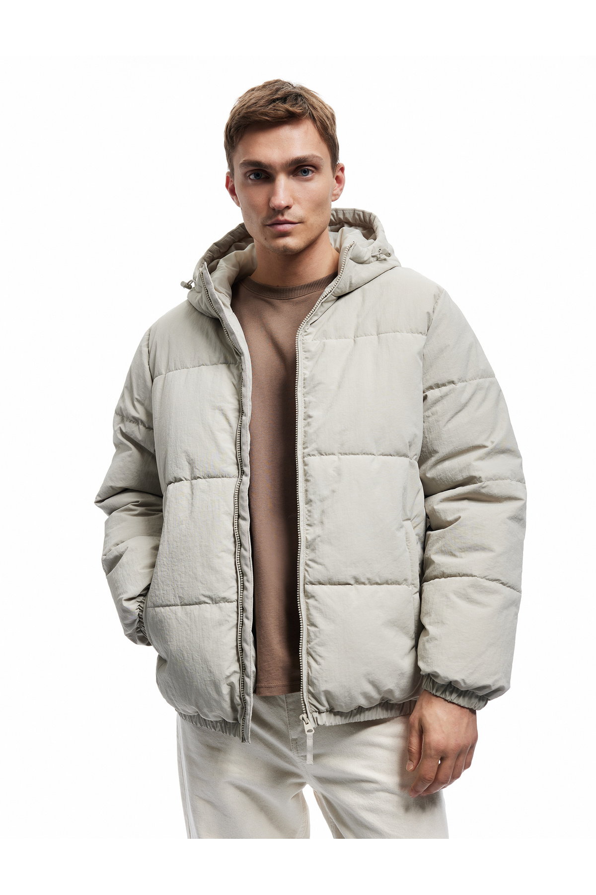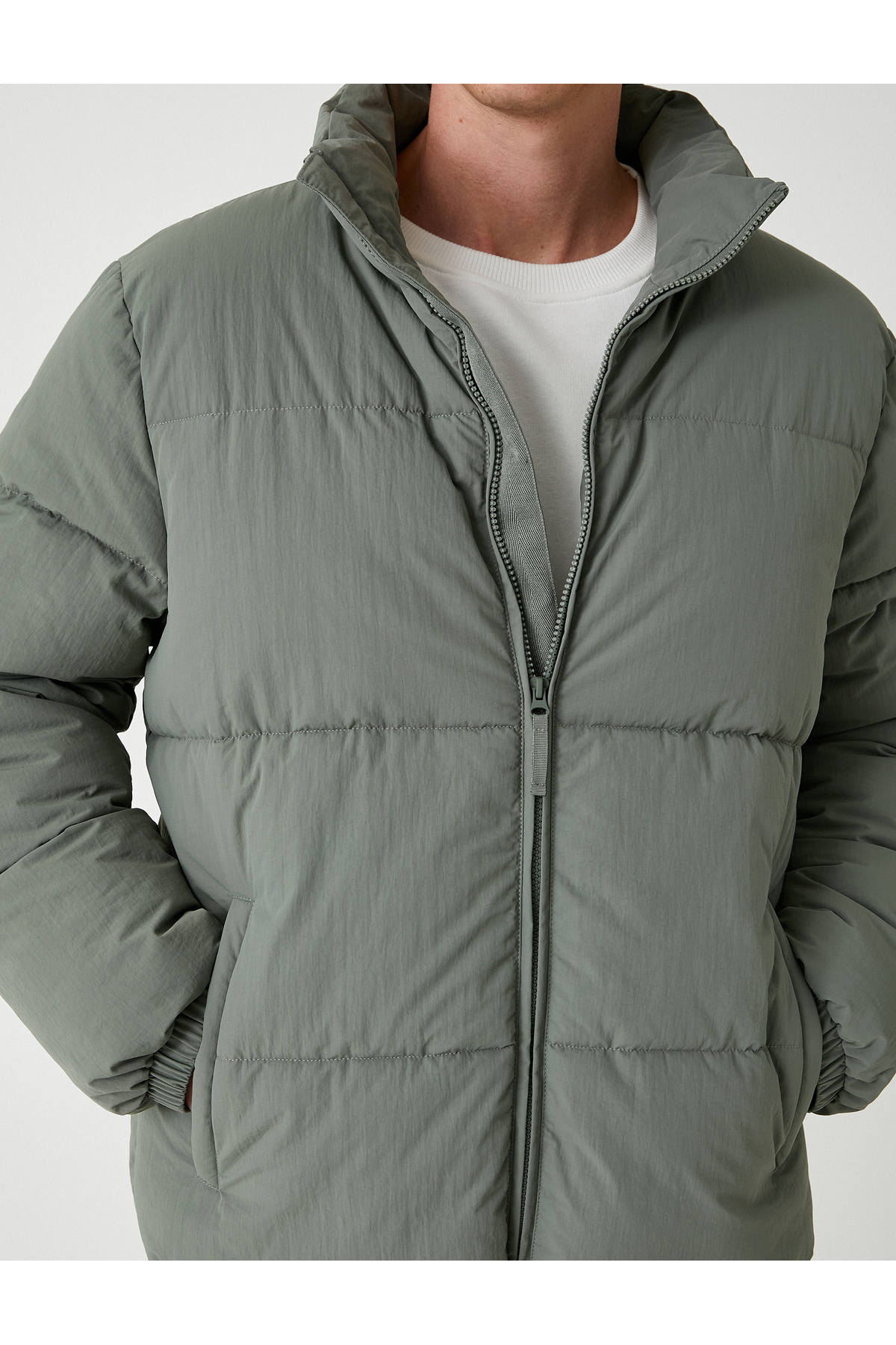Şişme Mont Slogan Baskılı Fermuarlı Cep Detaylı Şişme Mont Slogan Baskılı Fermuarlı Cep Detaylı 5WAM20095HW XL