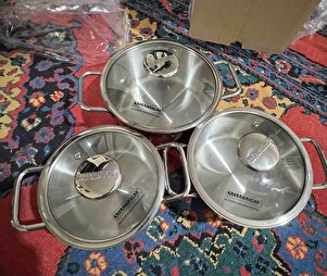 Yağmur İndüksiyon Tabanlı 3’lü Tencere Seti Yağmur İndüksiyon Tabanlı 3’lü Tencere Seti 9022 تک سایز