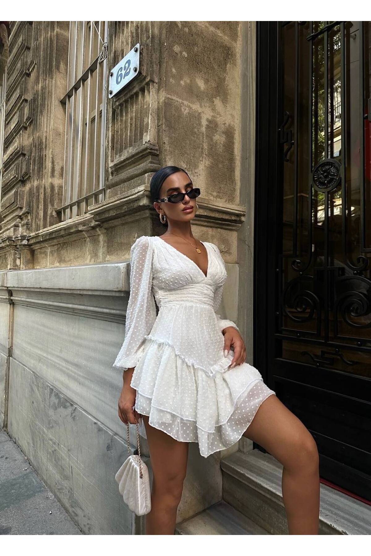Kadın Beyaz Renk Drapeli Elbise Kadın Beyaz Renk Drapeli Elbise 136625lp89 XL