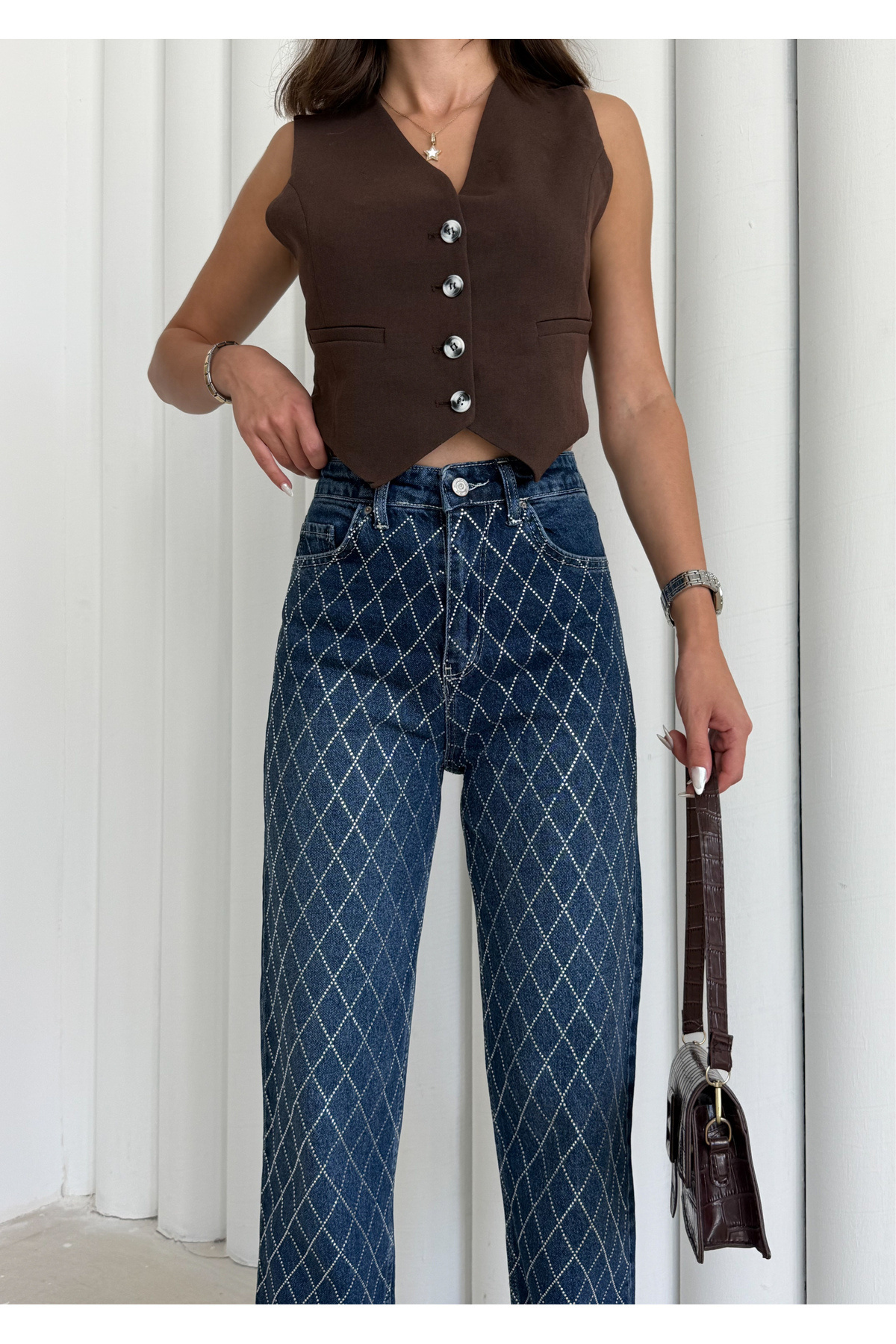 Kadın Yüksek Bel Özel Tasarım Vintage Wide Leg Denim Pantolon Kadın Yüksek Bel Özel Tasarım Vintage Wide Leg Denim Pantolon 4750 44