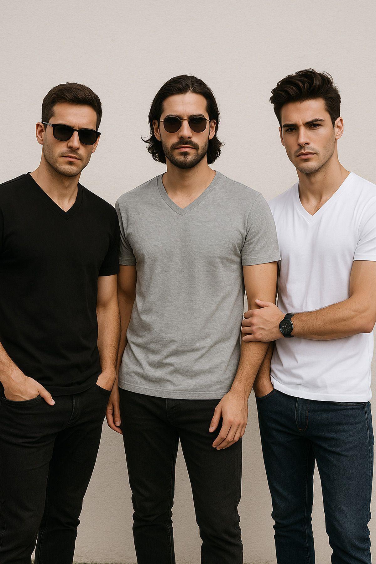 Erkek 3'lü Paket Kısa Kollu V Yaka T-shirt Erkek 3'lü Paket Kısa Kollu V Yaka T-shirt vyakatişört 2XL