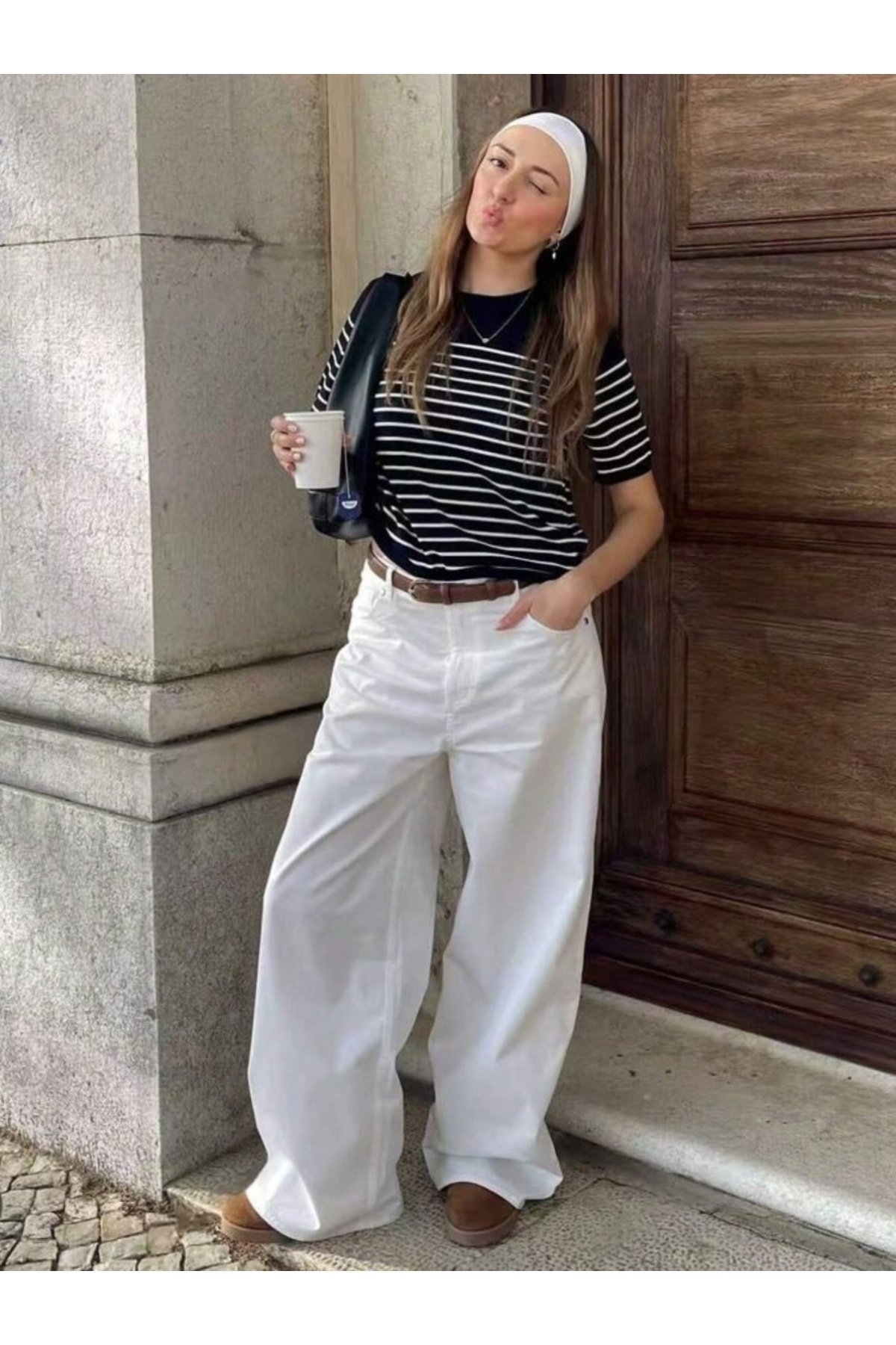 Kadın Siyah Çizgili Bisiklet Yaka Soğuk Örgü Mevsimlik Tişört Kadın Siyah Çizgili Bisiklet Yaka Soğuk Örgü Mevsimlik Tişört Fmoda20 L