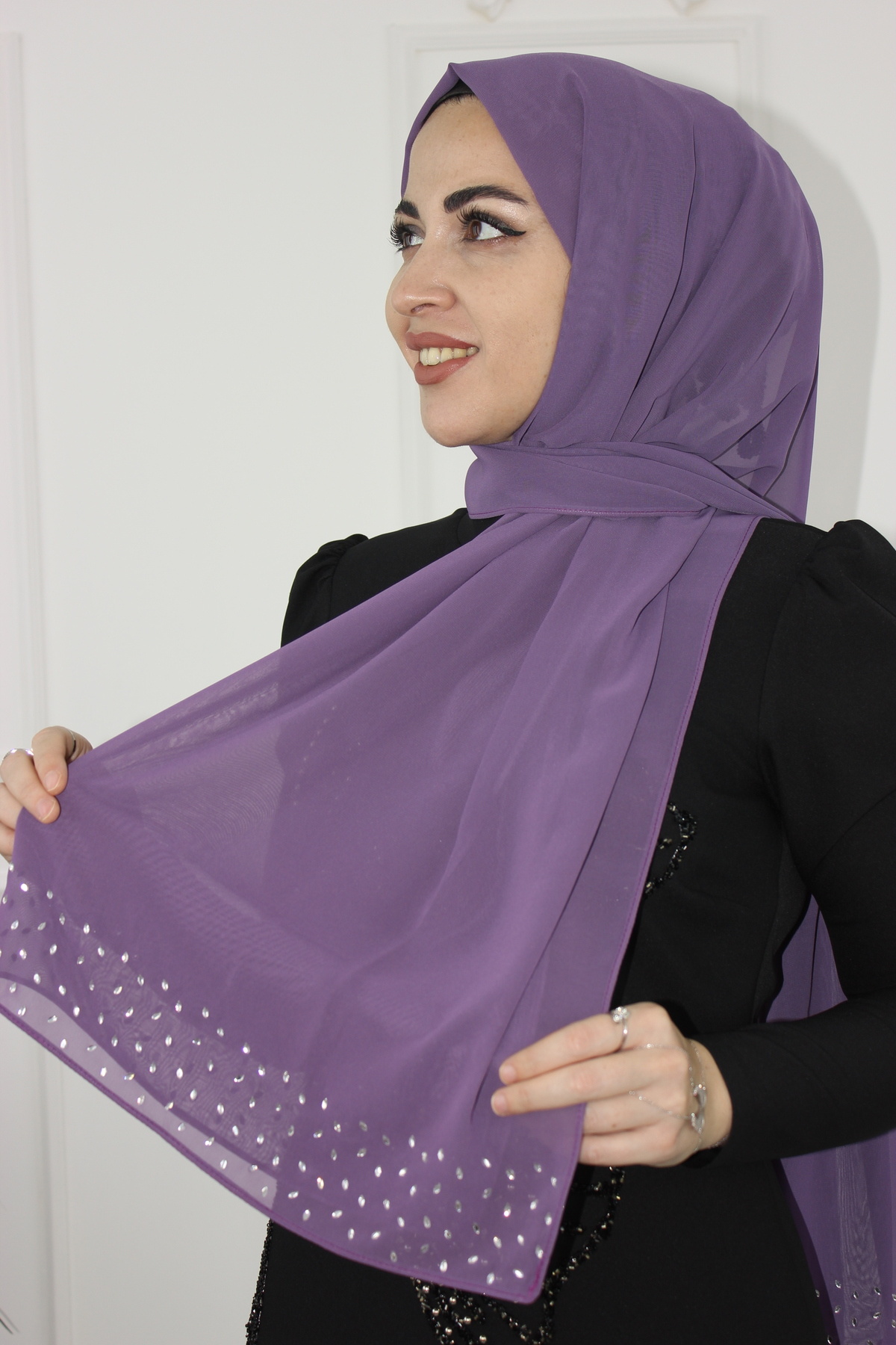 Meridyen Taşlı Şifon Şal Meridyen Taşlı Şifon Şal 21408 0