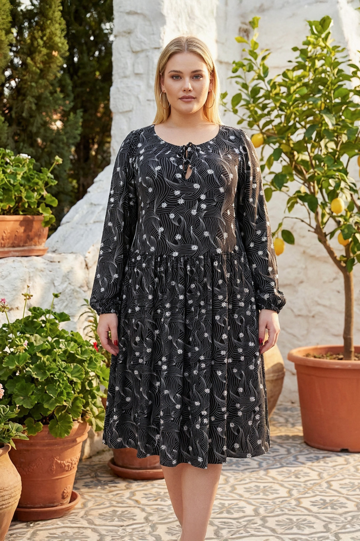 Büyük Beden Uzun Kollu Yakası Bağlamalı Eteği Pileli Elbise 100-75 Büyük Beden Uzun Kollu Yakası Bağlamalı Eteği Pileli Elbise 100-75 BYK-25K-100-75 58-60