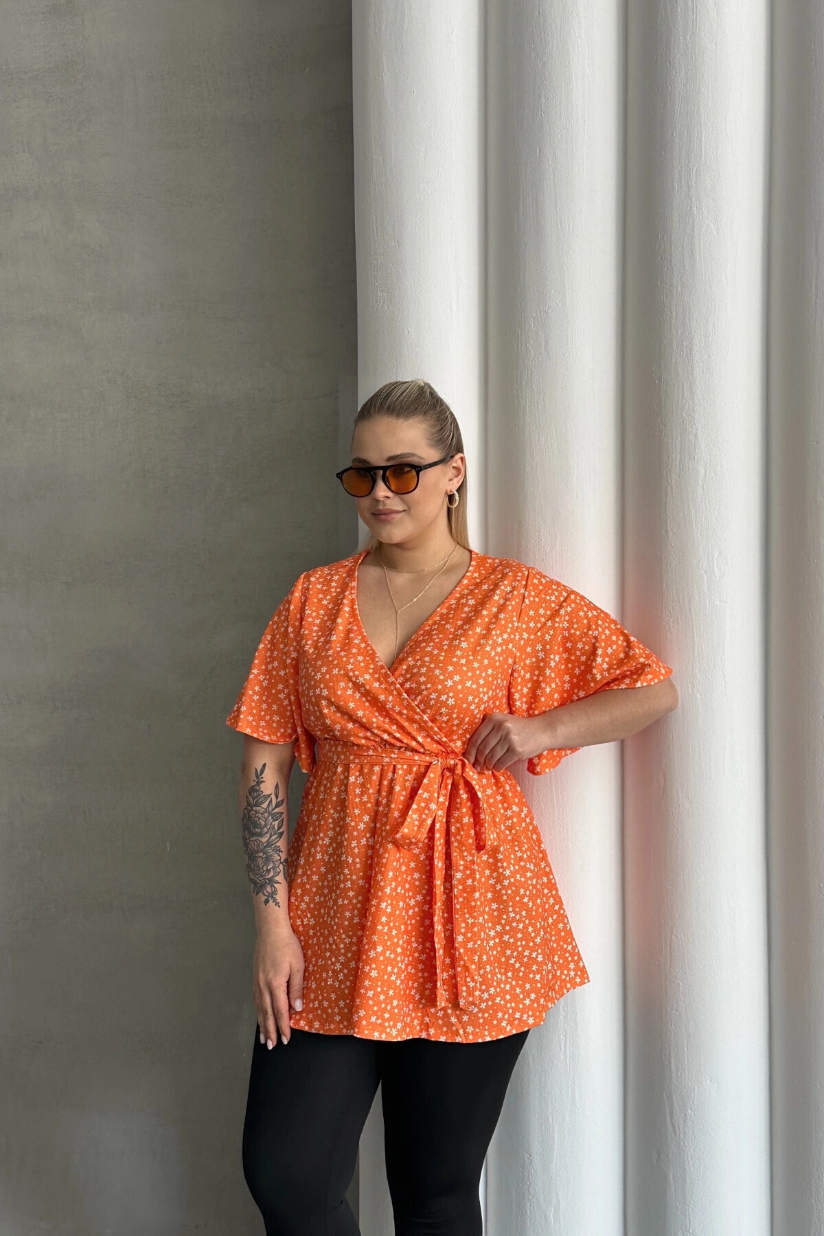 Büyük Beden Kısa Kollu V Yaka Önü Bağlama Detaylı Bluz 97-40 Büyük Beden Kısa Kollu V Yaka Önü Bağlama Detaylı Bluz 97-40 BYK-25K-97-40 58-60